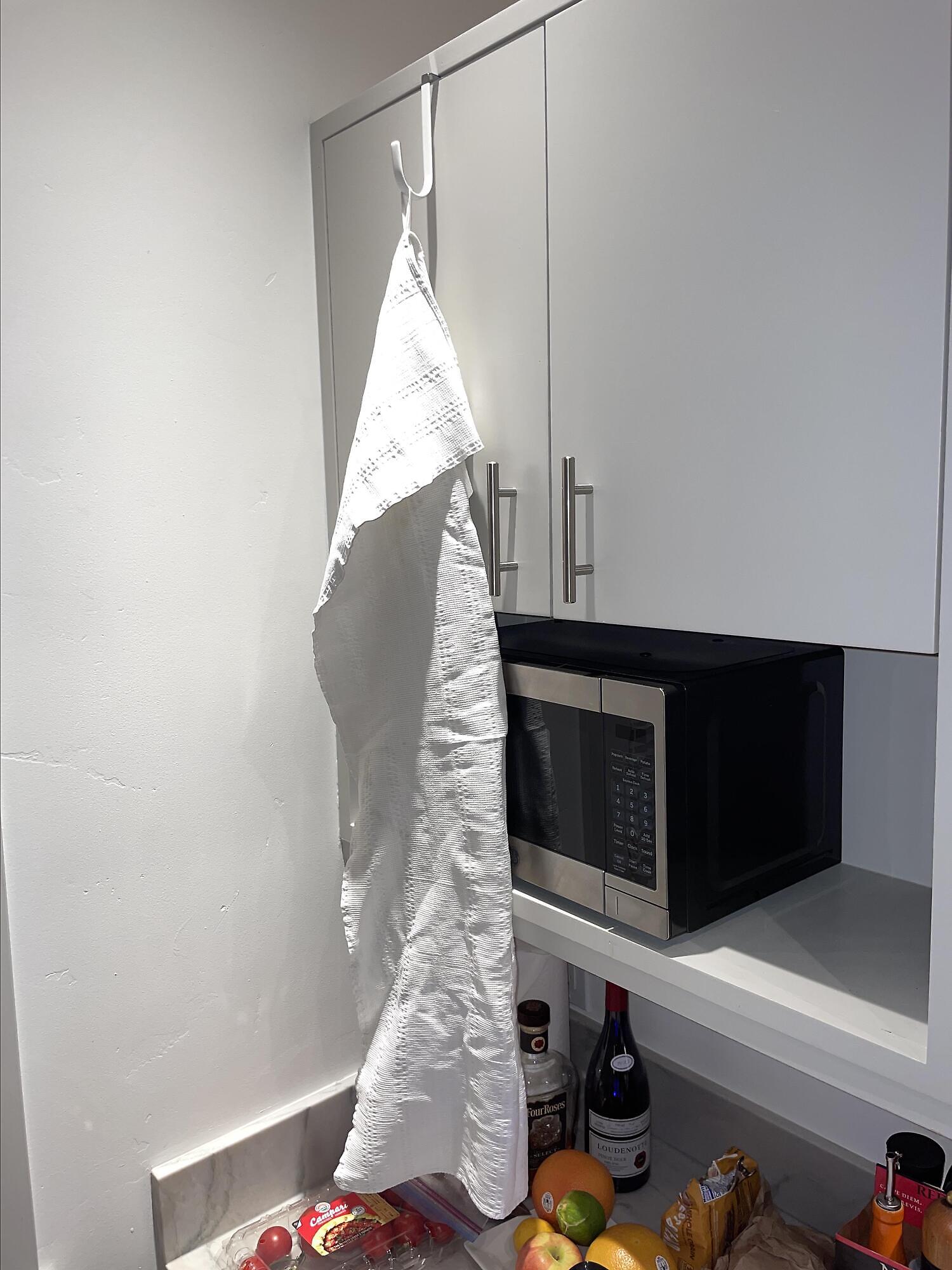 Letzteres Problem ist der systematische Mangel an Haken. Ich weiß nicht, wie eure Küche aussieht, aber bei uns sind Haken in die Wand gebohrt, an denen Küchenhandtücher hängen. Im Bad sind Haken in die Wand gebohrt, an denen Badehandtücher hängen. In von Amateuren vermieteteten Ferienwohnungen fehlen diese Dinge, aus mir unerfindlichen Gründen.