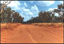 Abbildung [4]: Der rote Sand einer staubigen Straße, auf der nur alle 500km eine Tankstelle kommt.