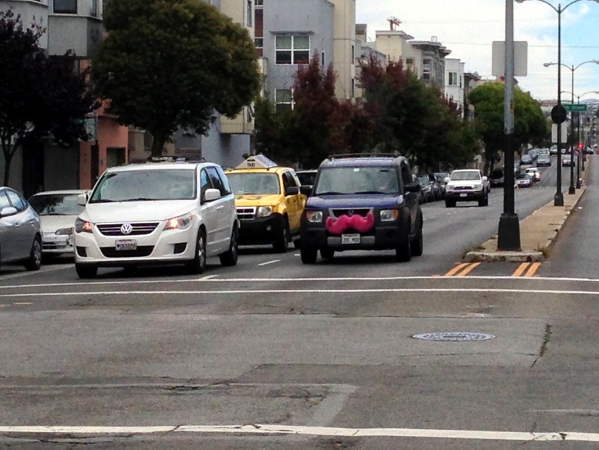 Ubers Heimat ist San Francisco, wo der Service sehr gut ankommt, aber vor kurzem unerwartet ein ganz neuer Konkurrent auftauchte: Privatautos, auf deren Kühler ein grotesk großer pinkfarbener Schnurrbart prangt. Schnurrbart heißt auf Englisch "Moustache", und weil der pinke Fummel auf Autos montiert ist, wird daraus "Carstache". Dahinter steckt eine weitere Startup-Firma namens "Lyft". Fahrgäste fordern die Wagen ebenfalls per Handy-App an, und zahlen am Ende der Fahrt mit einer Kreditkarten-"Spende", die mit etwa 20% weniger als eine entsprechende Taxifahrt vom Fahrer "vorgeschlagen" wird.
