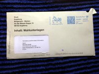 Also zückten Michael und ich die Kugelschreiber, um unsere Kreuze zu machen, und tüteten alles wieder in die entsprechenden farbigen Briefumschläge ein. Dabei kommt der Wahlzettel in einen anonymen Umschlag, den man zupappt und in den Rückumschlag steckt. Das stellte sich bei den Augsburger Wahlunterlagen als schwierig heraus, da der Rückumschlag genauso groß wie der Wahlumschlag war! Die Münchner hatten die Umschläge so dimensioniert, dass der kleine Wahlumschlag in den etwas größeren Rückumschlag passte.