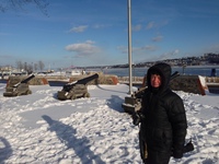 There's many ancient cannons standing around everywhere throughout the city and all kinds of old masonry for the curious visitor to inspect. From what we've heard, during the summer months, Quebec turns into a possibly hard to bear tourist location, with all kinds of buzzling festivals and packed stores and restaurants. During the winter months, however, it is charminging bleary, and the few restaurants still open bid a warm welcome to visitors, and will happily walk them through the entire menu in English if that is what it takes.