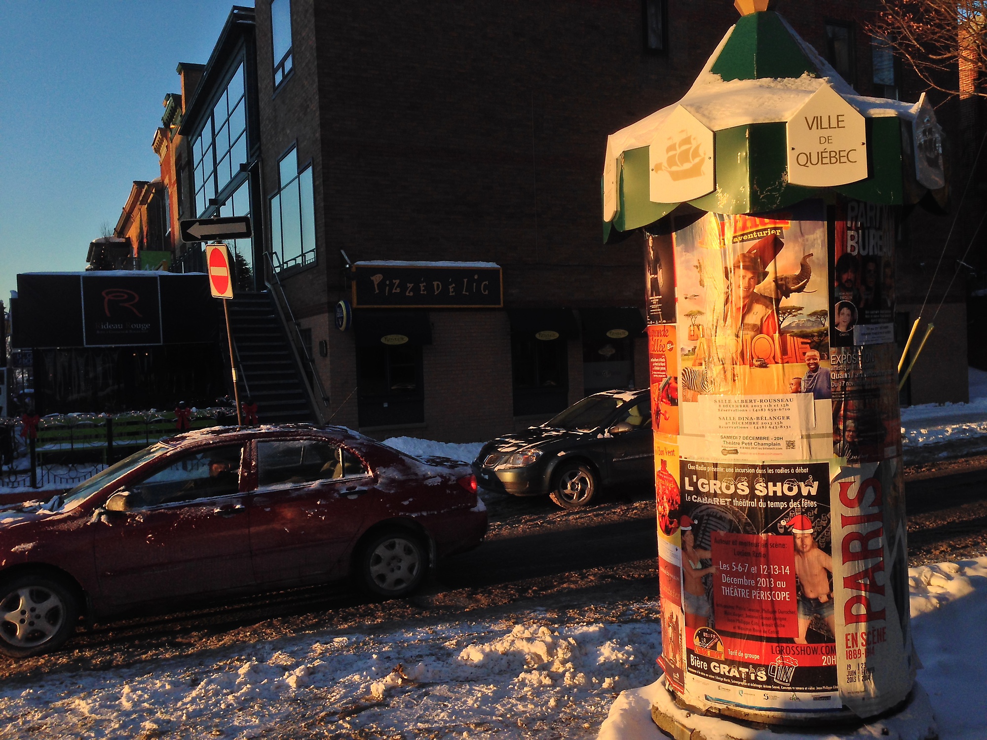 As soon as we got off the train in Quebec, we noticed that the outside temperature had gone down from "frosty" to "brutally cold". During our stay, we experienced cold snaps with temperatures as low as -14F (-26C), and if you're outside on such a day and the cold wind is blowing in your face, this gets old pretty quickly.