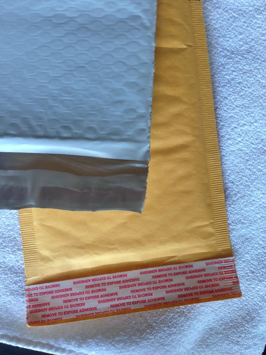 When shipping items which already weigh close to a dozen ounces, it's a good strategy to avoid heavy cardboard boxes and go with bubble wrap envelopes for packaging instead (Figure 2). Clueless newbies buy bubble wrap envelopes at Walgreens at $1.50 a pop, while experts order a hundred of them on Ebay at $0.20 a piece. But don't be suprised if the box containing those 100 envelopes is a giant cube measuring 30 inches in each dimension!
