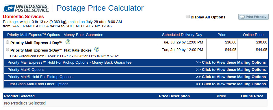 Regardless, I'm going to talk about another great deal today. What even many Americans don't know is that USPS offers great prices on sending small packages across the country as well. It's called "First Class Package". Customers unaware of this offering pay between $5.60 and $6.95 for "Priority Mail" packages, but frugal users keep an eye on the package weight not exceeding 13 ounces (368g) and pay between $2.30 and $4.25 for First Class instead.