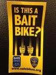 Die Polizisten baten mich darum, auf dem Fahrrad einen sogenannten "Bait-Bike"-Aufkleber anzubringen (Abbildung 4). Das kannte ich noch nicht, aber ließ mir erklären, dass die Polizei in San Francisco angeblich bestimmte Fahrräder mit versteckten Sendern präpariert, die, falls das Lockvogel-Fahrrad gestohlen wird, den Fahndern auf die Spur helfen. Jedes Fahrrad damit auszustatten, wäre natürlich zu teuer, also pappt man auf alle anderen Fahrräder einen Aufkleber drauf, der angeblich die Diebe abschreckt. Ob das funktioniert, wage ich zu bezweifeln, aber es kostet ja nichts.