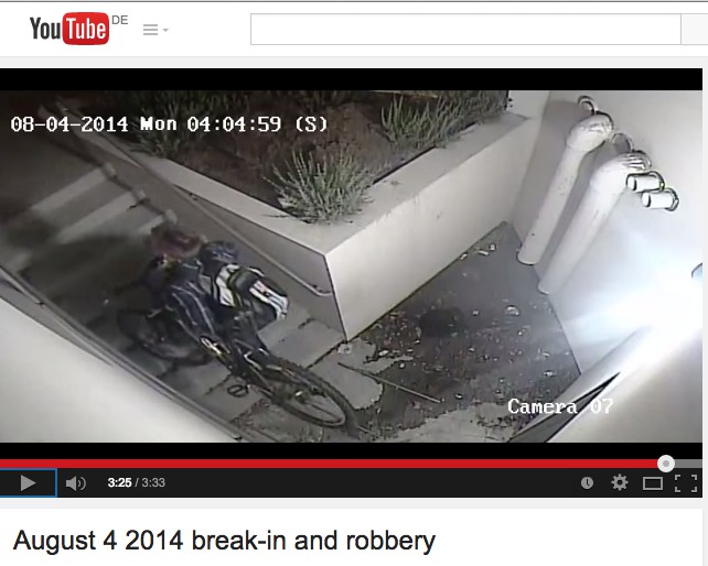 Michael In letzter Zeit mehren sich die Einbrüche in unserer Gegend, wie man im Internet hautnah auf Nextdoor (Rundbrief 09/2014) erfährt. Vor einem guten halben Jahr hat's auch uns erwischt, denn da hatte jemand das Schloss unserer Parkgarage aufgeknackt und mein Fahrrad entwendet. Da ich schon wusste, dass sich nachts allerhand zwielichtige Gestalten herumtreiben, hatte ich es nicht nur mit einem dicken Metallbügelschloss abgesperrt, sondern letzteres auch noch mit einem Stahlkabel an einem Wasserrohr angekettet.