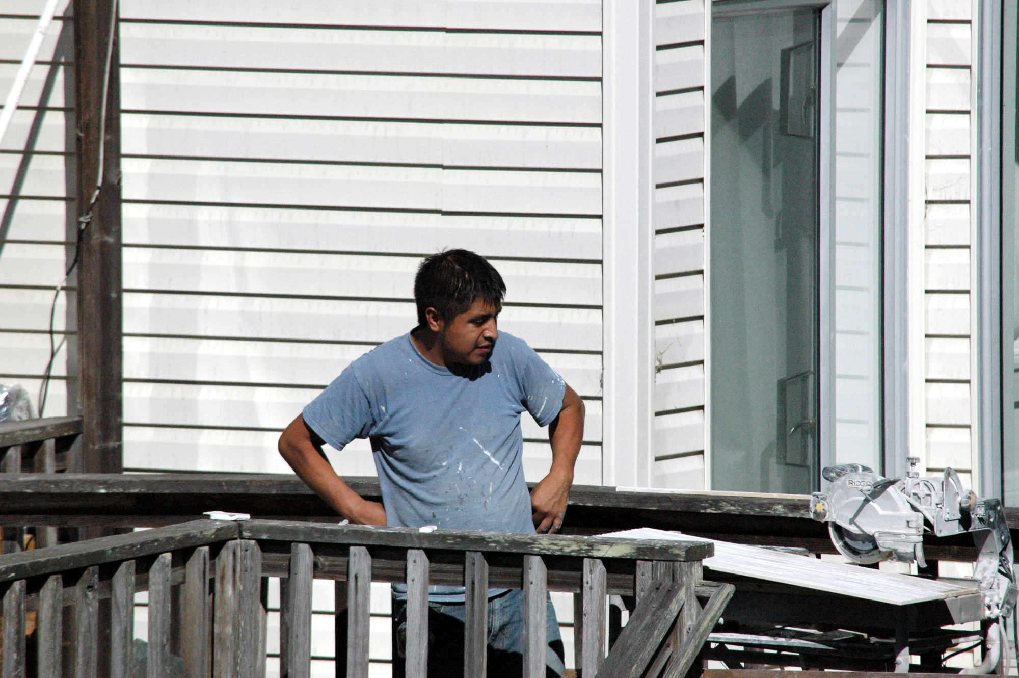 Bei uns um die Ecke hat zum Beispiel ein reicher Volltrottel ein reparaturbedürftiges Haus für sage und schreibe 1.000.000 (eine Million Dollar) gekauft, hat die dort wohnende Familie auf die Straße gesetzt und lässt es jetzt von einer mexikanischen Baufirma instandsetzen. Ende 2013 fanden sich ein paar Bauarbeiter ein, um daran herumzuwerkeln, aber eher lustlos, fast hobbymäßig. Sie fingen morgens um halb acht wild zu hämmern und zu sägen an, um dann ab neun Uhr in eine stundenlange Lethargie zu verfallen, später hin und wieder unmotiviert herumzuklopfen, aber bis abends nichts mehr Produktives zu erledigen. Mittlerweile lärmt die Firma "Rodriguez Builders" schon fast ein ganzes Jahr im und am Haus herum, und wirft den ganzen Baumüll in den Vorgarten. Mal kommt nur ein Arbeiter, der ein bisserl herumklopft, mal kommen drei und sie machen am sonnigen Samstagnachmittag einen infernalen Krach mit der Kreissäge, die sie alle Stunde mal anstellen und Bretter einzeln sägen, statt den ganzen Stoß auf einmal zu erledigen und Ruhe zu geben.