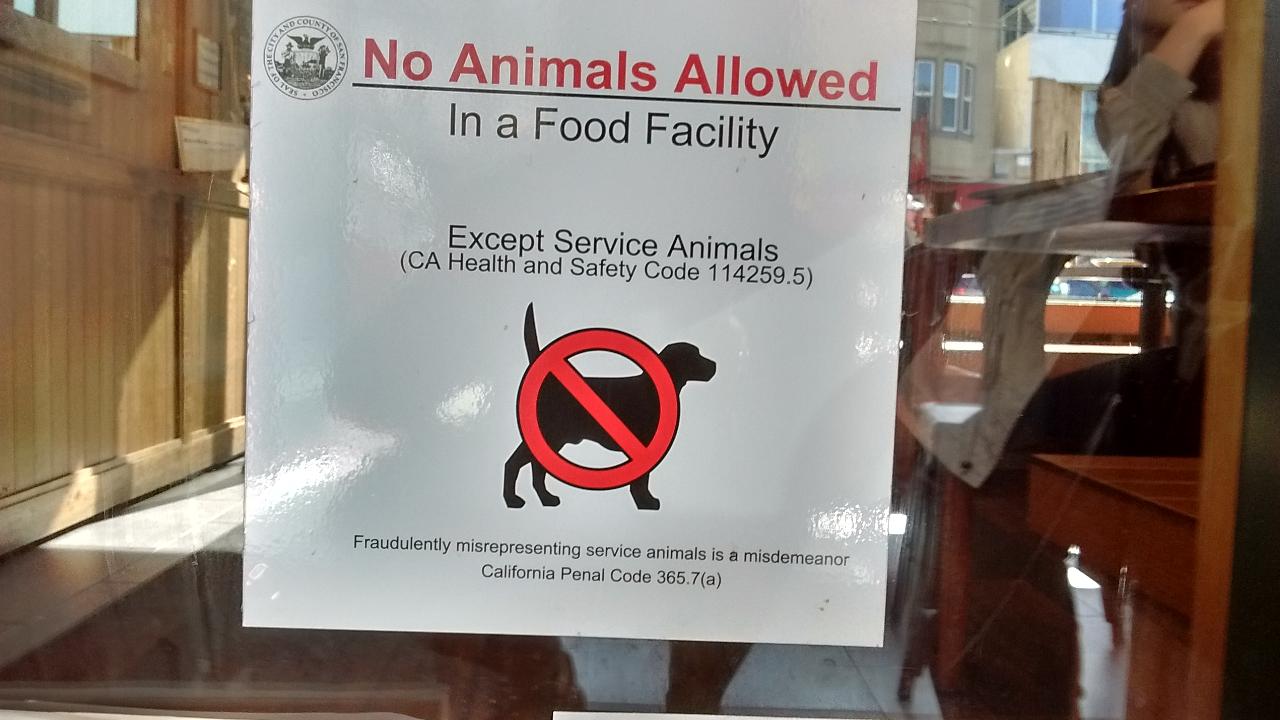 Auch ist es in ganz Kalifornien gesetzlich verboten, Hunde mit in Geschäfte mitzunehmen, in denen Lebensmittel verkauft werden, nur Führhunde für Blinde sind gestattet. Aber ich habe im Supermarkt Costco schon oft Leute mit Hunden gesehen. Der Deutsche würde da sagen: "Sie gell, Hunde sind hier nicht erlaubt, das geht so nicht!" aber der Amerikaner sagt: "Ach, das ist ja schnuckliger Hund, wie heißt der denn? Ist das eigentlich ein Bernhardiner oder ein Sennhund?". Nur Restaurants sind streng, die setzen das Hundeverbot immer durch, und nur wer draußen sitzt, darf einen Hund dabeihaben. Der Grund: Die Besitzer würden ihre Lizenz verlieren, falls es publik würde, dass ein Wirt in den Schankräumen Hunde duldet. Leinenpflicht für Hunde am Strand oder in Parks? Amis Fiffi braucht nicht angeleint zu werden, der will bloß spielen! Kommt der Ranger und macht Rabatz, gibt man sich kleinlaut und keiner hat das Schild gelesen.