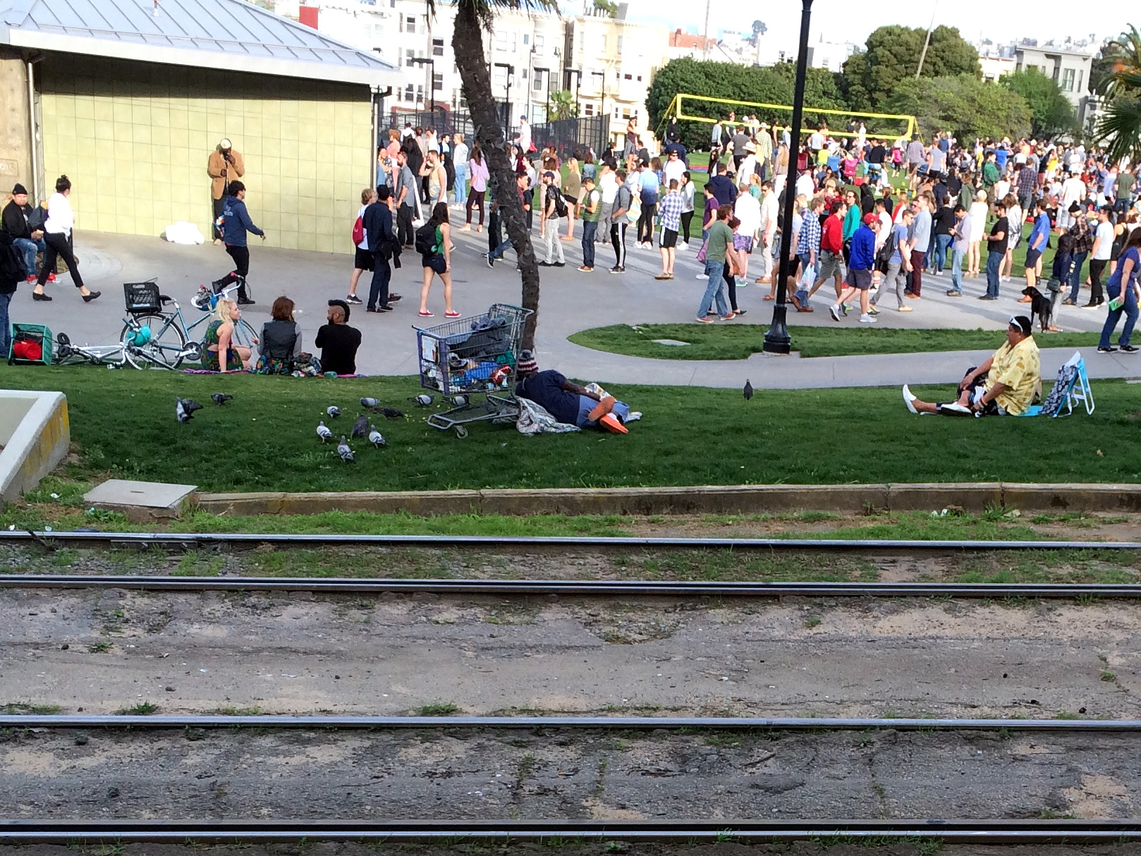 Allerdings scheint der Stadt mitten im Projekt das Geld ausgegangen zu sein, denn das Pissoir im Dolores Park besteht nur aus einem halbrunden Drahtzaun mit einer weißen Sichtplane und ist nach hinten zum Bürgersteig und zur Straße hin völlig offen. Lustig ist auch, dass die J-Straßenbahn ihre Haltestelle direkt vor dem Pissoir hat. Da haben die Planer das Wort "öffentlich" einmal ganz wörtlich genommen. Hätte vielleicht doch einmal jemand nach Paris fahren sollen, um sich inspirierenzu lassen, schließlich hat das San-Francisco-Modell satte $15.000 gekostet.