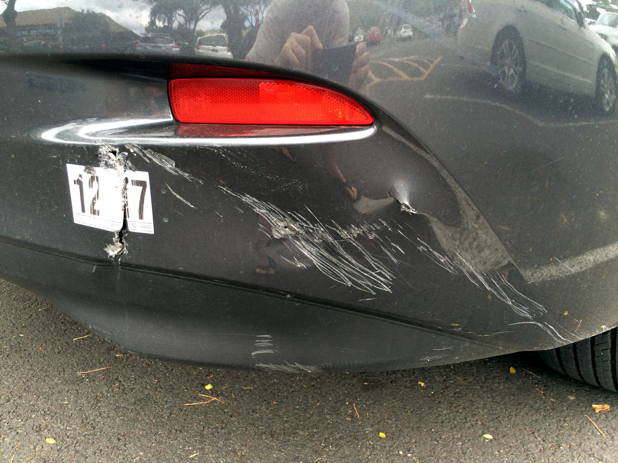 Zum zweiten stellt sich die Frage nach der Vollkaskoversicherung. Wer haftet, wenn auf einem Touristenparkplatz ein Hallodri das Seitenfenster einschlägt? Was passiert, wenn ein Reifen platzt oder ein aufgewirbelter Stein einen Sprung in die Windschutzscheibe haut? Wer zahlt, wenn das Mietauto gar ganz gestohlen wird? Auch hier bieten die Mietwagenanbieter entsprechende Produkte an. Für etwa 15 Dollar pro Tag kann der Kunde das Auto am Schalter vollkaskoversichern. Zum gespielten Entsetzen der Schalterfritzen lehne ich aber immer alle Versicherungen ab, wenn wir mal wieder einen Wagen abholen, und verlassen uns auf unsere private Autoversicherung sowie unsere Kreditkarte. Karten wie unsere American Express bieten nämlich eine eingeschränkte Vollkaskoversicherung an, wenn man mit ihnen die Mietwagenrechnung bezahlt. Als wir letztes Mal im März auf Hawaii waren, hatten wir die unerfreuliche Gelegenheit, das Ganze mal praxisnah auszuprobieren.