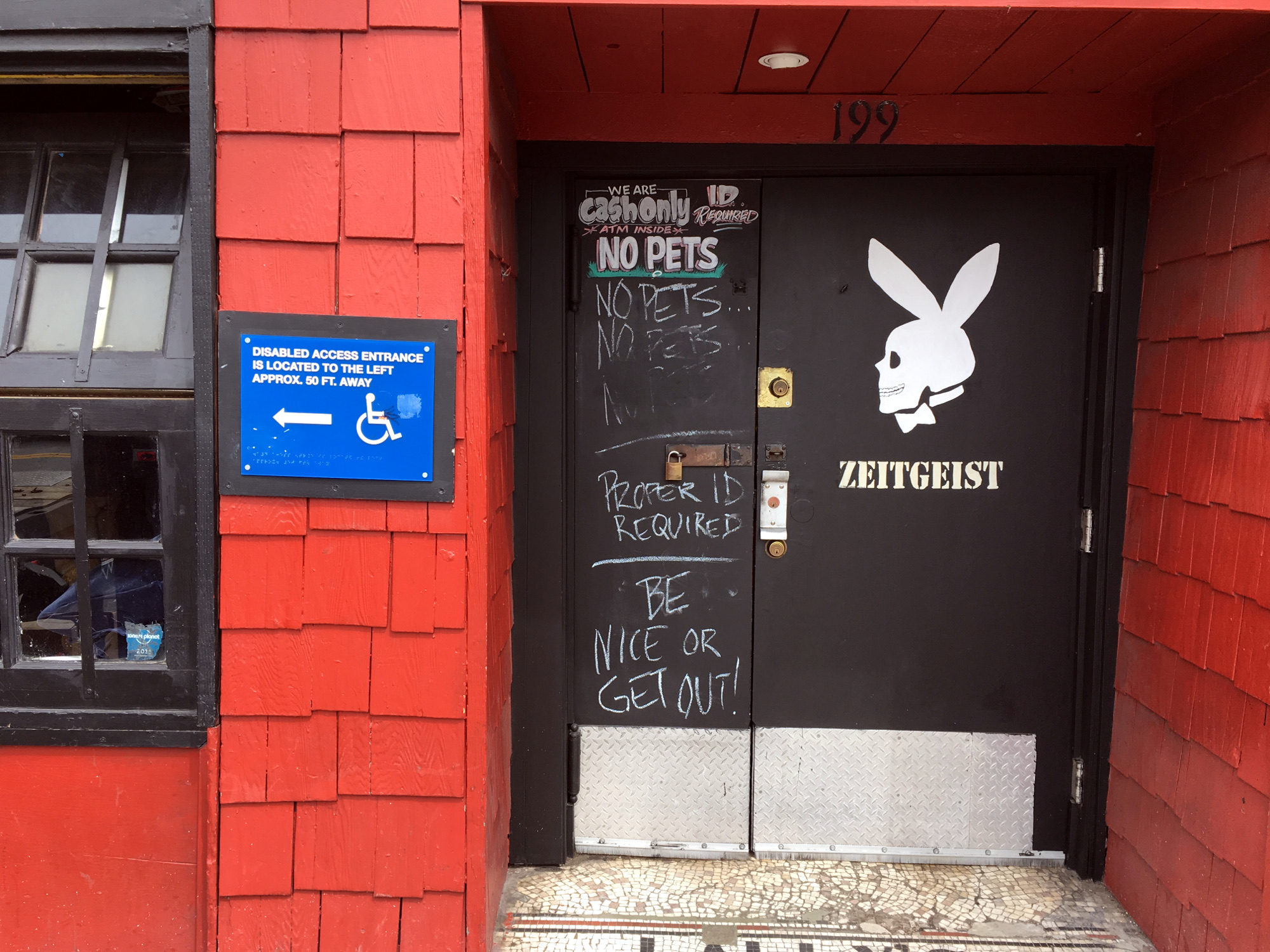 Angelika Ihr habt hier sicher schon gelesen, dass hässliche, charakterlose, überteuerte Wohnsilos immer mehr das Stadtbild von San Francisco prägen und lieb gewonnenes und Traditionelles verdrängen. Manchmal gewinnen allerdings auch die Alteingesessenen in dieser Stadt, in diesem Fall die Kneipe "Zeitgeist".