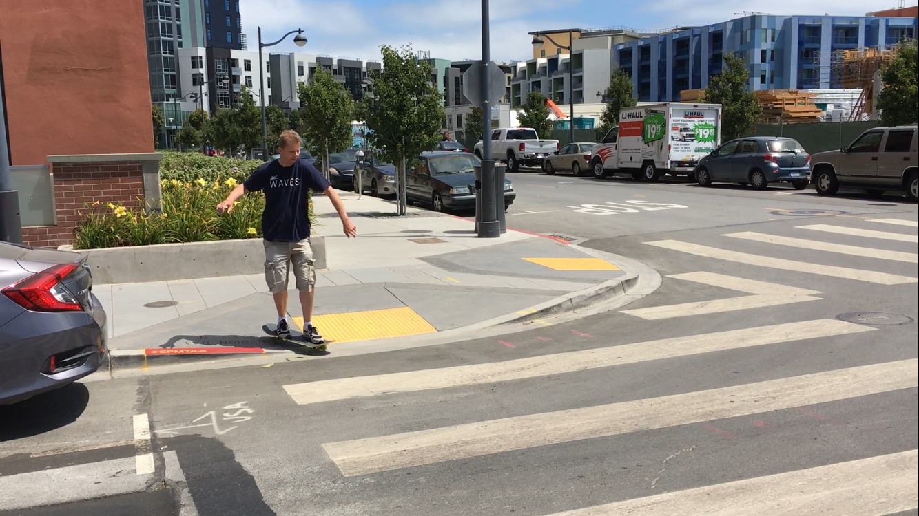 Beim urbanen Skateboardfahren in Amerika geht es vor allen Dingen darum, größere Stadtstrecken zu überwinden, also von A nach B zu kommen und dabei etwaige Hindernisse wie Randsteine, Behindertenrampen oder Treppenabsätze möglichst schwungvoll und elegant zu überwinden. Kids in Kalifonien lernen schon im Vorschulalter, wie man über einen hohen Randstein abfährt, ohne dass das Board mit der Vorderkante auf der Straße steckenbleibt und der Fahrer mit der Kinnlade bremst. Der Trick dabei: Das Brett (Deck) eines Skateboards wölbt sich vorne und hinten nach oben, und wenn man den Fuß hinten draufstellt und runterdrückt, hebt sich die Vorderseite des Boards und man fährt horizontal über den Randstein auf die Straße ab. Die Vorderräder bleiben in der Luft bis die Hinterräder über die Kante runterfallen. Das sieht sehr cool aus, besonders wenn man dabei unbeeindruckt schaut, so, als machte man das 100 Mal am Tag.