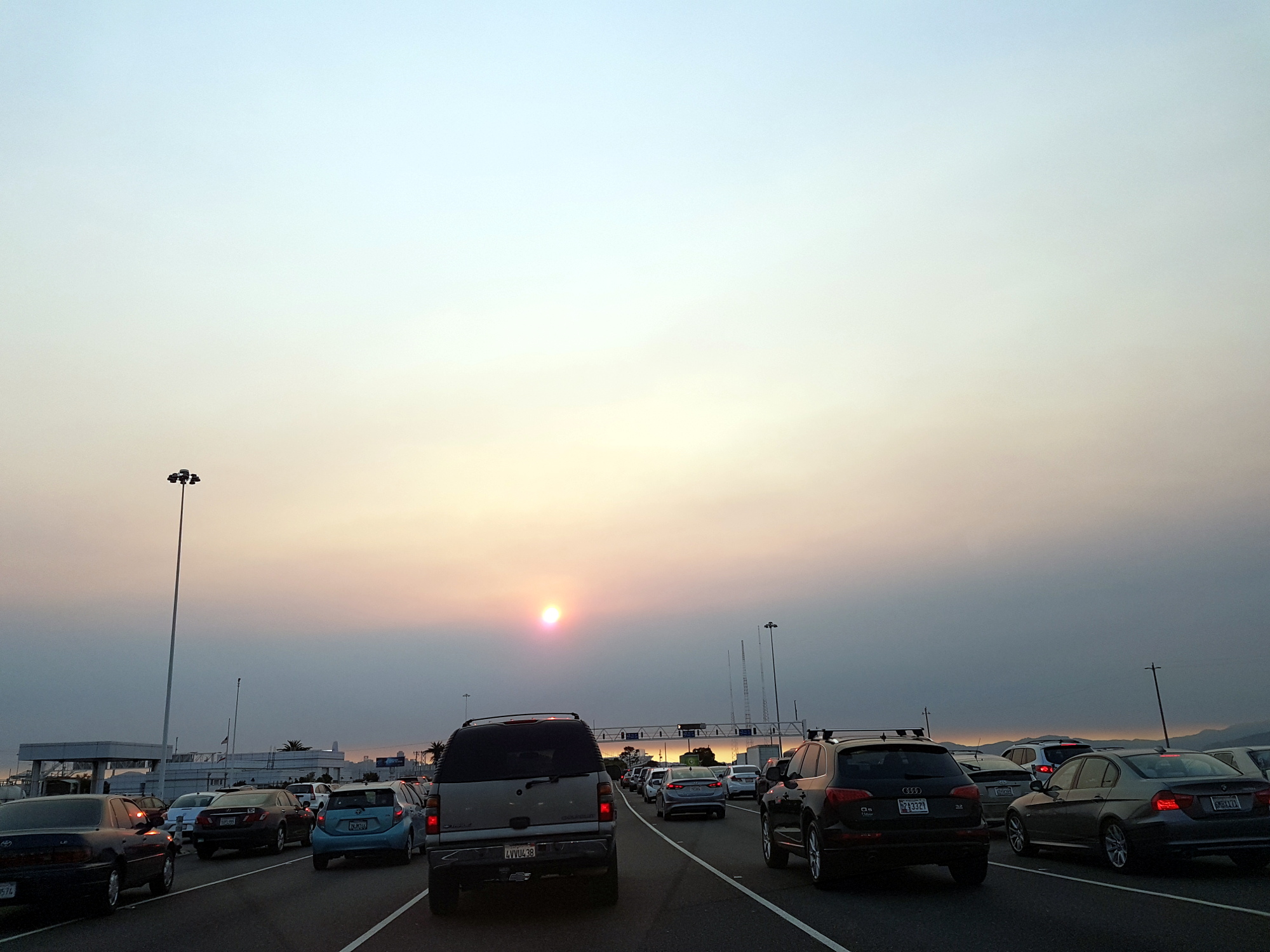 Die Luft in San Francisco war tagelang so schlecht wie in Peking; die Sonnenunergänge schön aber gespenstisch. Ich habe noch nie in meinem Leben solch eine knallrote Sonne gesehen. Leute liefen überall mit Mundschutz herum, wobei ich mir nicht sicher bin, ob das wirklich hilft. In der East Bay, wo ich des öfteren arbeitete, hatte ich sogar Asche auf dem Auto.