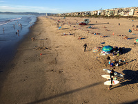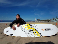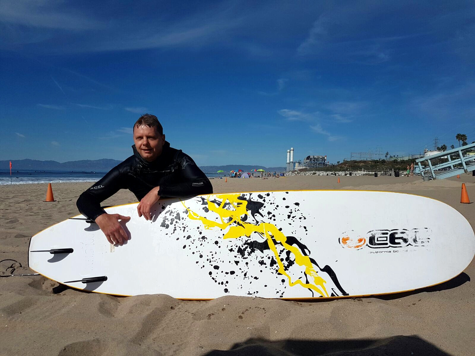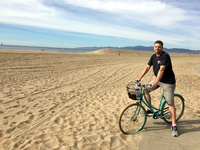 Wir radelten den Weg sowohl nach Norden als auch noch Süden ab und entdeckten dabei das nette Küstenstädtchen Manhattan Beach. Zu Michaels Glück war der Ozean dort sehr zum Surfen geeignet und so fuhren wir noch zweimal mit dem Auto hin, Michael zog seinen aus San Francisco mitgebrachten Wetsuit an, lieh sich am Strand ein Surfboard aus und surfte mit den Einheimischen in den Wellen.