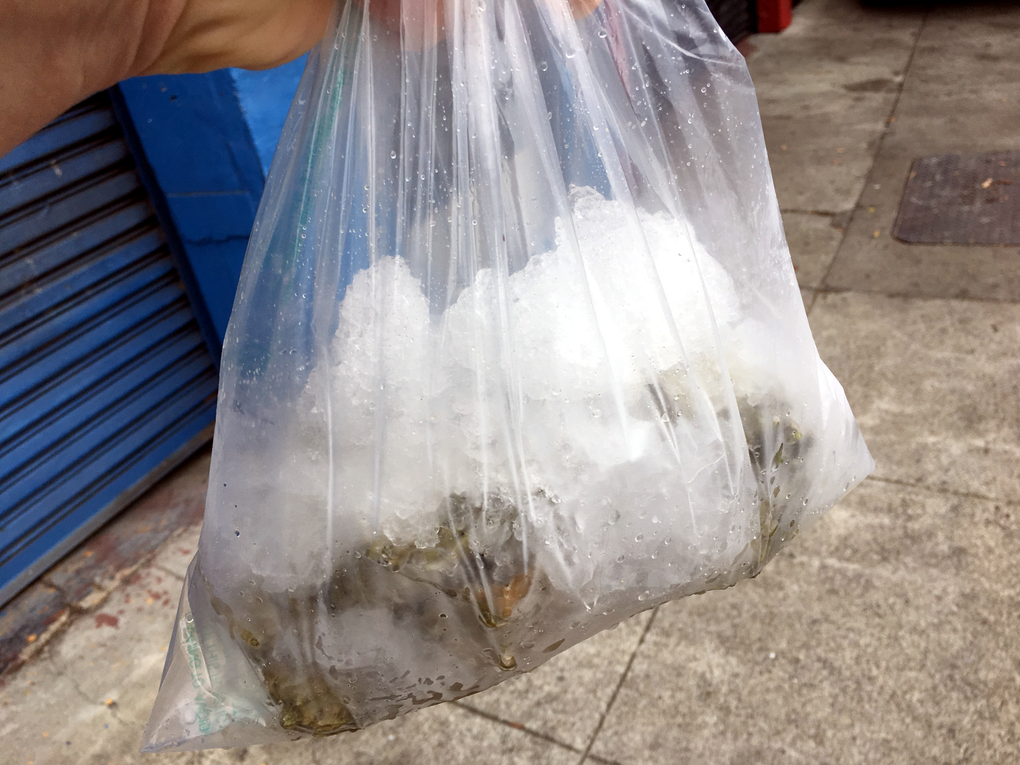 Ich sagte fröhlich guten Tag und wurde auf Spanisch begrüßt, fragte aber, da ich kein Spanisch kann, munter auf Englisch weiter, ob ich denn ein Dutzend Austern haben könnte, und möglichst solche, die leicht zu öffnen wären. Alle wären leicht zu öffnen, lachte der Mann aus dem Gefrierschrank, kam mit einer Plastiktüte zurück und ich gab ihm dafür die an der Tafel im Verkaufsraum angeschriebenen 11 Dollar in bar. So einfach geht das also!