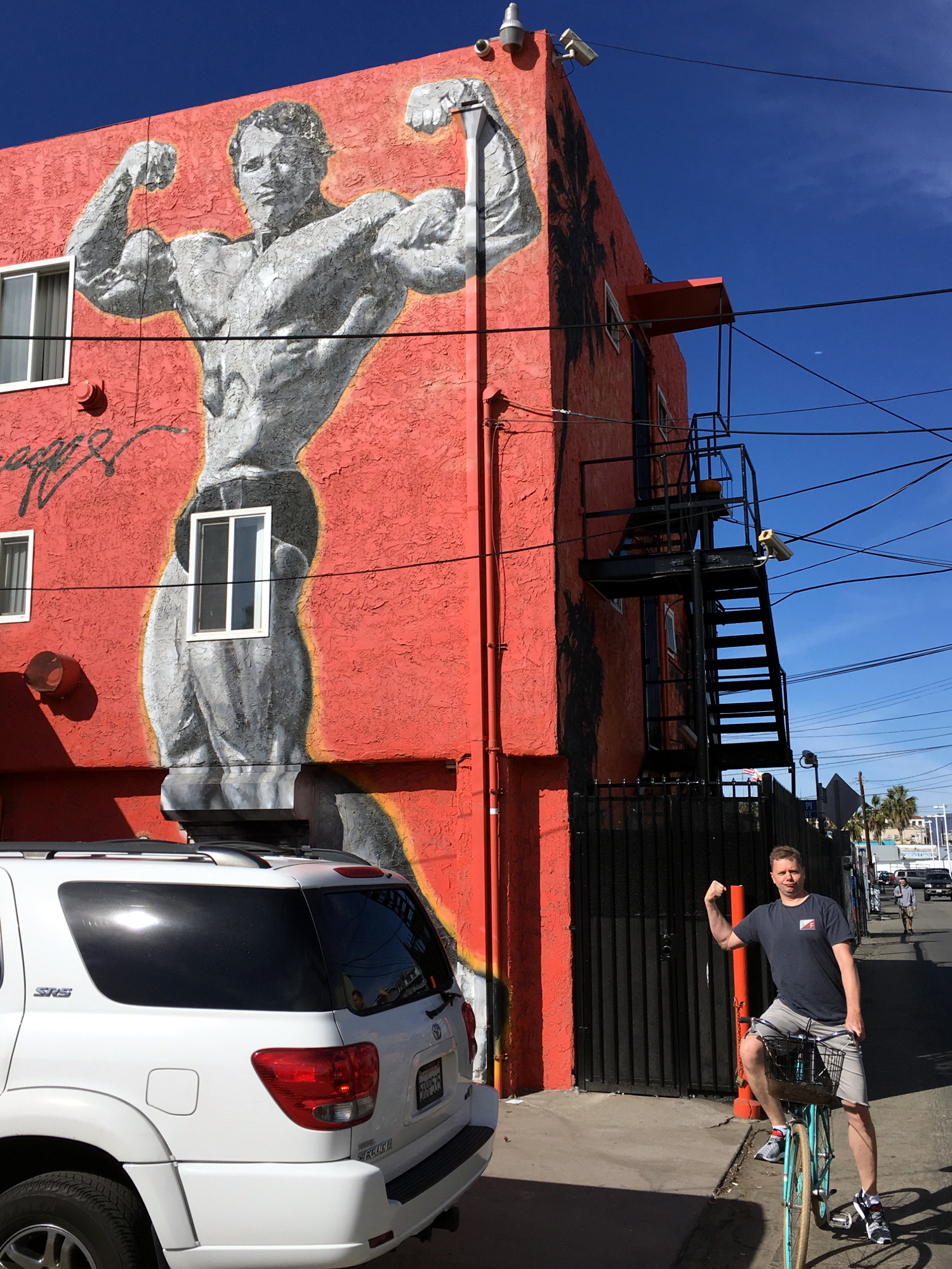 Nachdem er Bauch dann voll ist, braucht man nochmal drei Stunden nach Los Angeles, voausgesetzt es gibt keinen Stau. Staus gehören in Los Angeles allerdings zum Alltag. Uns zog es dann wieder nach Venice Beach (Rundbrief 09/2013), einem Stadtteil von Los Angeles, der direkt am Ozean liegt und sich auszeichnet durch Lebenskünstler, Sonnenanbeter, Surfer, Alt-Hippies, gute Restaurants, dem Venice Beach Boardwalk, dem Muscle Beach, an dem schon Arnold Schwarzenegger seine Muskeln stählte, und einer Menge Obdachloser.
