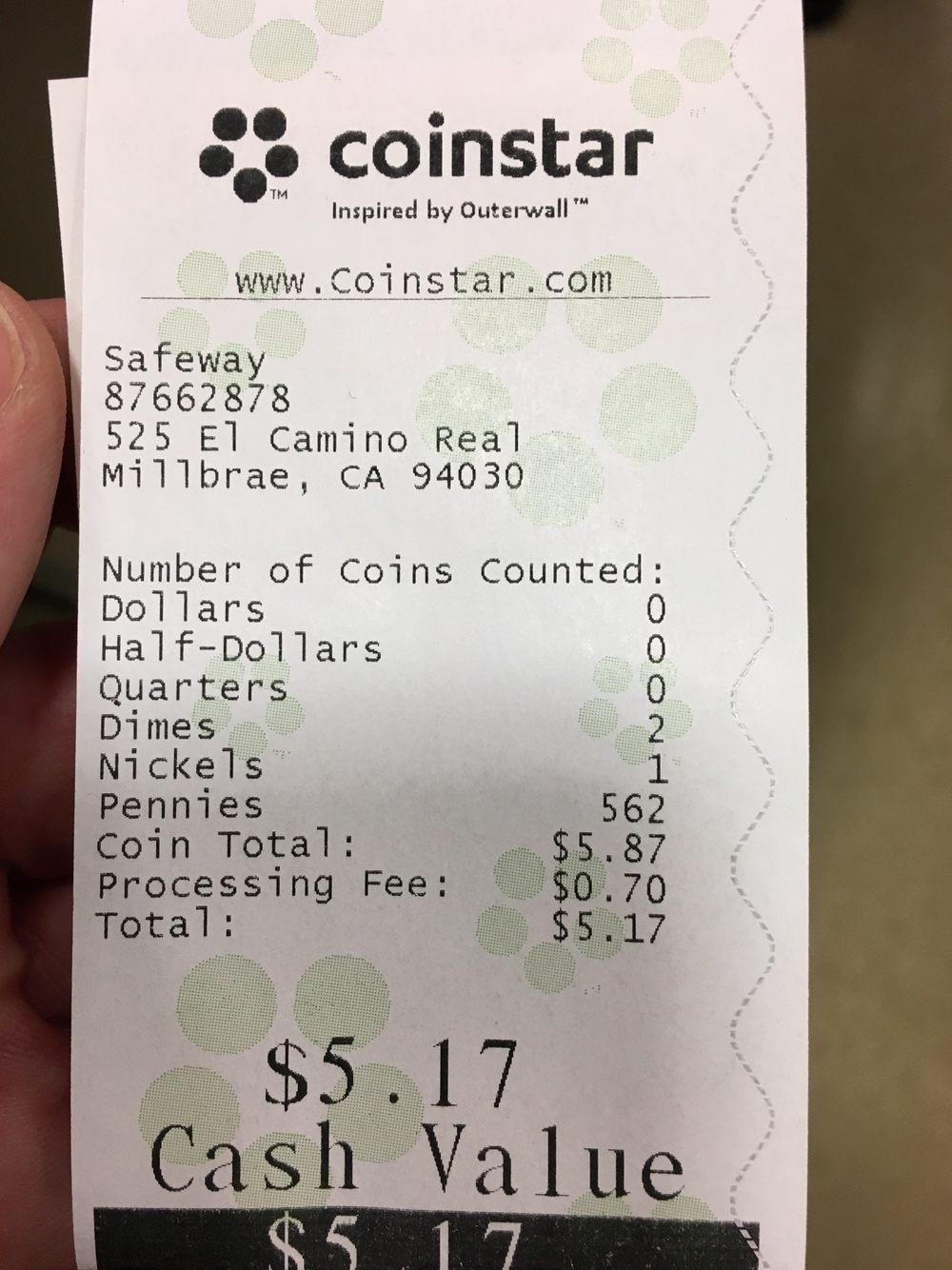 When paying cash with a bill, I get change back that I never spend again in my life, because I no longer carry coins with me, only bills in my pocket for absolute emergencies. Like, if the financial system collapses and in an apocalyptic world like in the Mad Max movies, only hard currency ensures survival. Therefore, I immediately deposit received coins in a small designated cup when I get home. Once a quarter, I empty the cup and put nickels, dimes, and quarters (5, 10, 25-cent pieces) into a Ziplock bag, which I then take to the card game in our Schafkopf round. I try to offload as many coins as possible to my fellow players and mainly collect bills. The 1-cent pieces, also called pennies, are not allowed by my card-playing brothers and sisters, so I collect them in another Ziplock bag, and when about 500 have accumulated, I take them to the Coinstar machine at the Safeway supermarket.