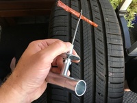 Das Verfahren sollte man allerdings nur anwenden, falls das Loch im Reifen nicht am Reifenrand ist, denn sonst könnte es die Reifenstruktur schwächen und unschön geplatzte Reifen nach sich ziehen. Und man kann mit geflicktem Reifen auch nicht mehr auf Autobahngeschwindigkeit beschleunigen, aber in Amerika ist bei 130 km/h eh Schluss. Bis jetzt hat der Pfropfen gut gehalten, und ich habe noch 39 Würmchen übrig, der nächste Platten kann also kommen.