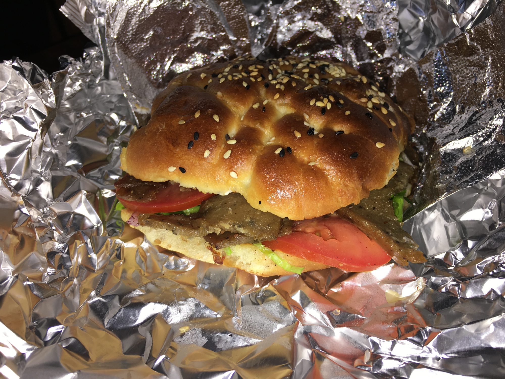 Nun machte kürzlich schon wieder ein türkisches Restaurant in unserer Nähe auf, es heißt "Shish Ke Baba" und ist an der Ecke 30ste Straße an der San Jose Avenue im Stadteil Bernal Heights. Ich erklärte der freundlichen Dame an der Kasse die Situation und ihr Mann in der Küche erklärte sich sofort bereit, mir einen Döner "German Style" aus einem Fladenbrot zu machen, das ihre Spezialität sei, nicht ganz das Korianderbrot aus deutsch-türkischen Imbissen, sondern mehr wie eine französische Brioche, aber immerhin. Sie wiesen mich noch darauf hin, das Ganze vorsichtig aus der Alufolie auszupacken und anzubeißen, weil der Inhalt sonst aus der Semmel fiele, aber da lachte ich nur und sagte, da hätte ich Übung drin. Der Spaß war nicht ganz billig, weil es das Gericht nur zusammen mit einem extra Salat gibt, aber ich zahlte so ungefähr 15 Dollar und war sehr zufrieden mit dem Döner.