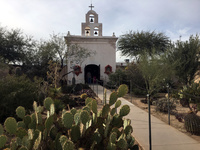 Weil wir schon mal da waren, fuhren wir auch noch an der Mission San Xavier del Bac bei Tucson vorbei, die 1692 von den Spaniern gegründet, 1770 von Apache-Indianern demoliert und 1783 wieder aufgebaut wurde. Die Gebäude sind auch heute noch gut erhalten und der Geschenke-Shop wird nicht nur als "affordable" angepriesen, sondern verkauft auch preisgünstige Pilgerwaren. Von einer kleinen Seitenkapelle (Abbildung 26), in der es wegen hunderten von angezündeten Kerzen richtig heiß war, erfuhren wir, dass das Gebäude mit den zwei Glockentürmchen angeblich in einer Episode der Fernsehserie von Breaking Bad zu sehen war, als Pilgerort für die beiden mexikanischen Gangster mit den Cowboystiefeln, die in extremer Pilgermanier durch den Staub auf die Kapelle zukrochen.
