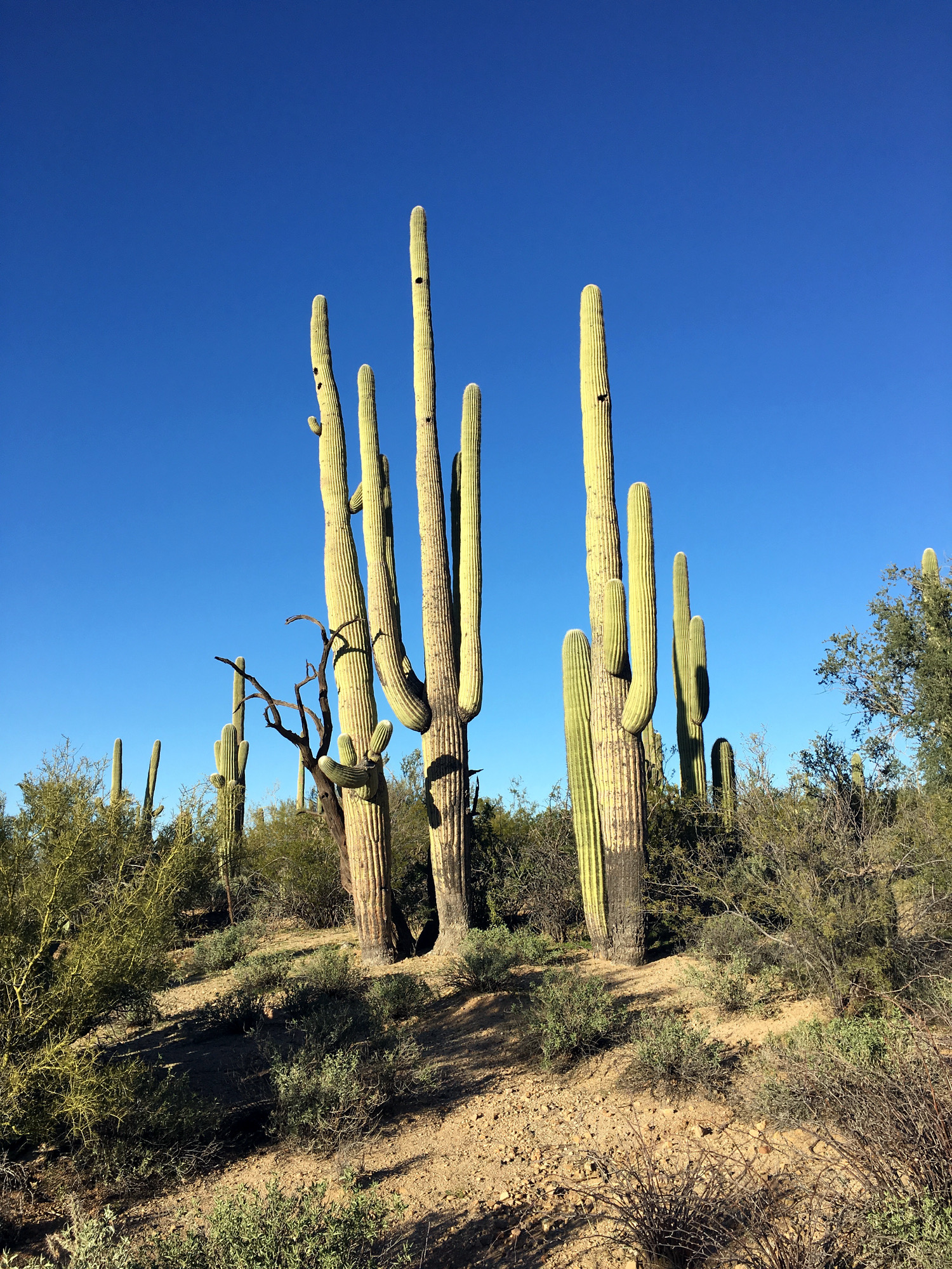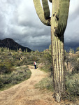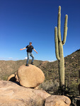 Die teilweise bestimmt acht Meter hohen Kakteen direkt an den Wanderwegen waren dann auch echt die Schau, sie wachsen selbst noch an steilen Hängen auf teilweise sehr steinigem Boden und kommen scheinbar ohne Wasser aus. Sie fühlen sich pudelwohl, und man sieht wirklich Hunderte prächtiger Exemplare. Auch allerhand Viehzeug springt herum, wir sahen einen herumstreunenden Coyoten und die allgegenwärtigen Erdhörnchen. Klapperschlangen soll es auch zuhauf geben, allerdings klapperte auf unseren Wegen Gott sei Dank nichts.
