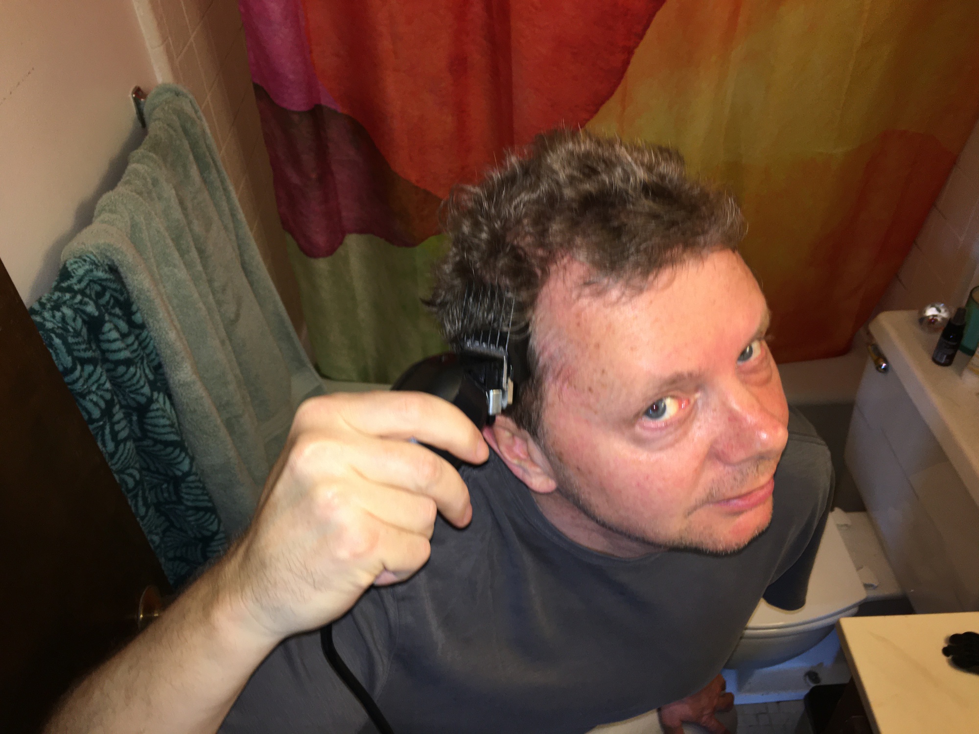 It is a cutting device at the end of a long hose that you connect to a vacuum cleaner. The vacuum cleaner sucks on the hair through the hose, and the cutting mechanism trims the ends all to the same length. The exorbitant price of $145 only deterred me briefly, but then I thought to myself, I absolutely have to include this in the newsletter, and clicked the "Buy" button. At the same time, I ordered a professional hair clipper, the "Wahl Pilot Clipper #8483," and after watching some YouTube videos, I was confident that I could trim my hair neatly.