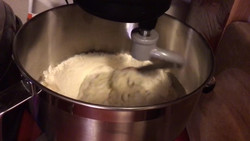 Here's the recipe from the linked video: Dissolve 13g of dry yeast in 365g of lukewarm water and let it sit for 10 minutes. Then, mix 632g of bread flour with 12g of salt and add it to a stand mixer with a dough hook. Slowly pour in the yeast water. After kneading for 5-10 minutes, the dough is ready. Cover the dough and let it rest for 30 minutes, then divide it into approximately 100g pieces. Shape these pieces into 20cm long cylinders and let them rest for another 20 minutes.