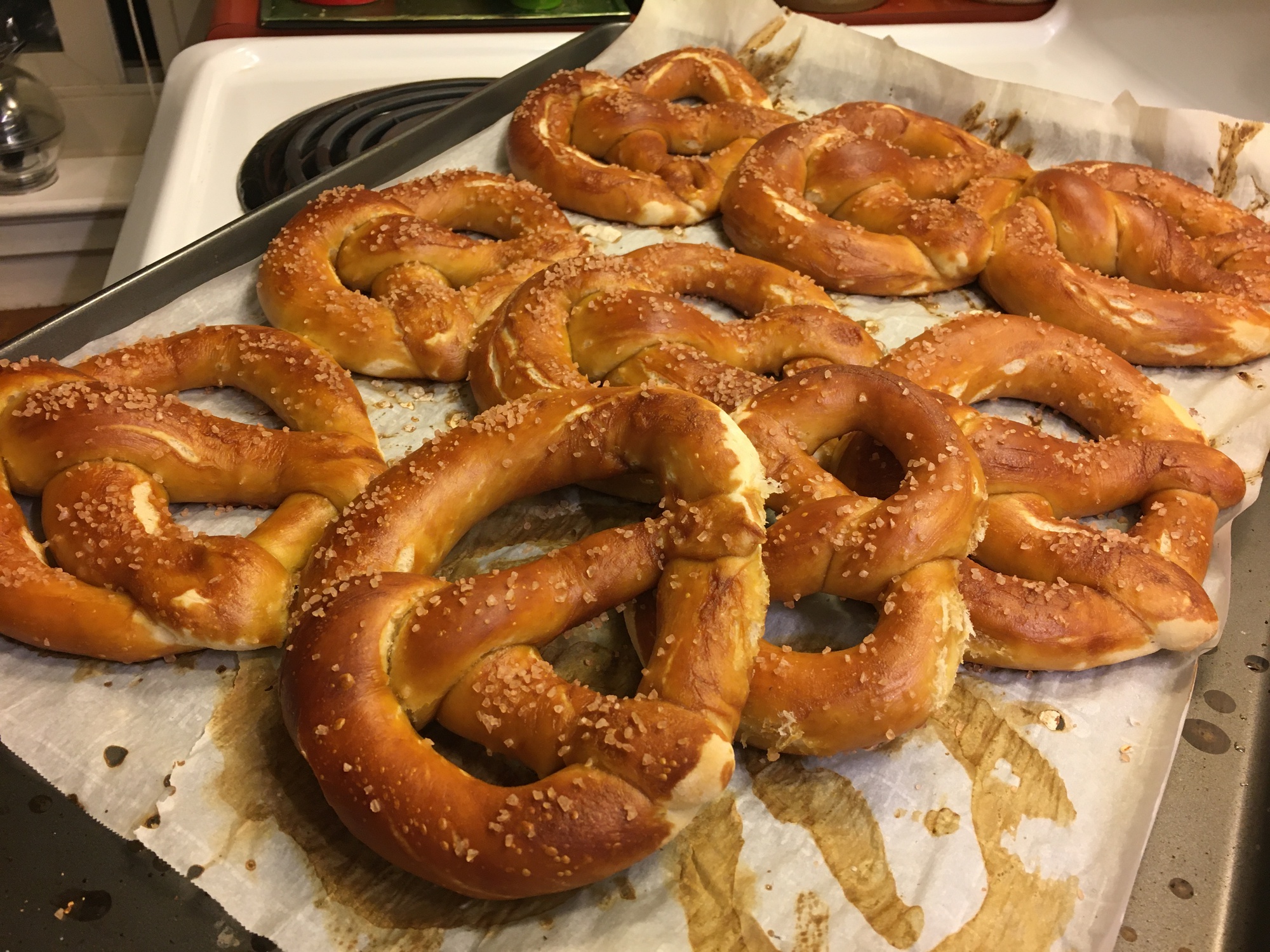Michael Fresh pretzels are unfortunately hard to come by in San Francisco. You can buy day-old pretzels from "Esther's Bakery" in Mountain View at the organic supermarket "Rainbow Grocery," but who likes stale pretzels? As previously reported (Rundbrief 06/2016), I discovered a pre-made pretzel baking mix a few years ago. I used it to bake a tray of pretzels every few weeks and was quite satisfied with it.