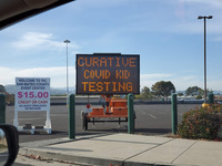 Then I drove to the test center in San Mateo. First, I joined the line of cars. Everyone was wearing masks, and the car windows remained firmly closed. An attendant held up a sign asking if I had an appointment with Project Baseline (no appointment, no test). I responded with a thumbs up to indicate yes. The attendant directed me to my lane, as there were also testing options from other providers on the site. Progressing at a snail's pace, I eventually reached another attendant who checked my identification number from the email through the closed window and my driver's license to ensure I was the correct person.