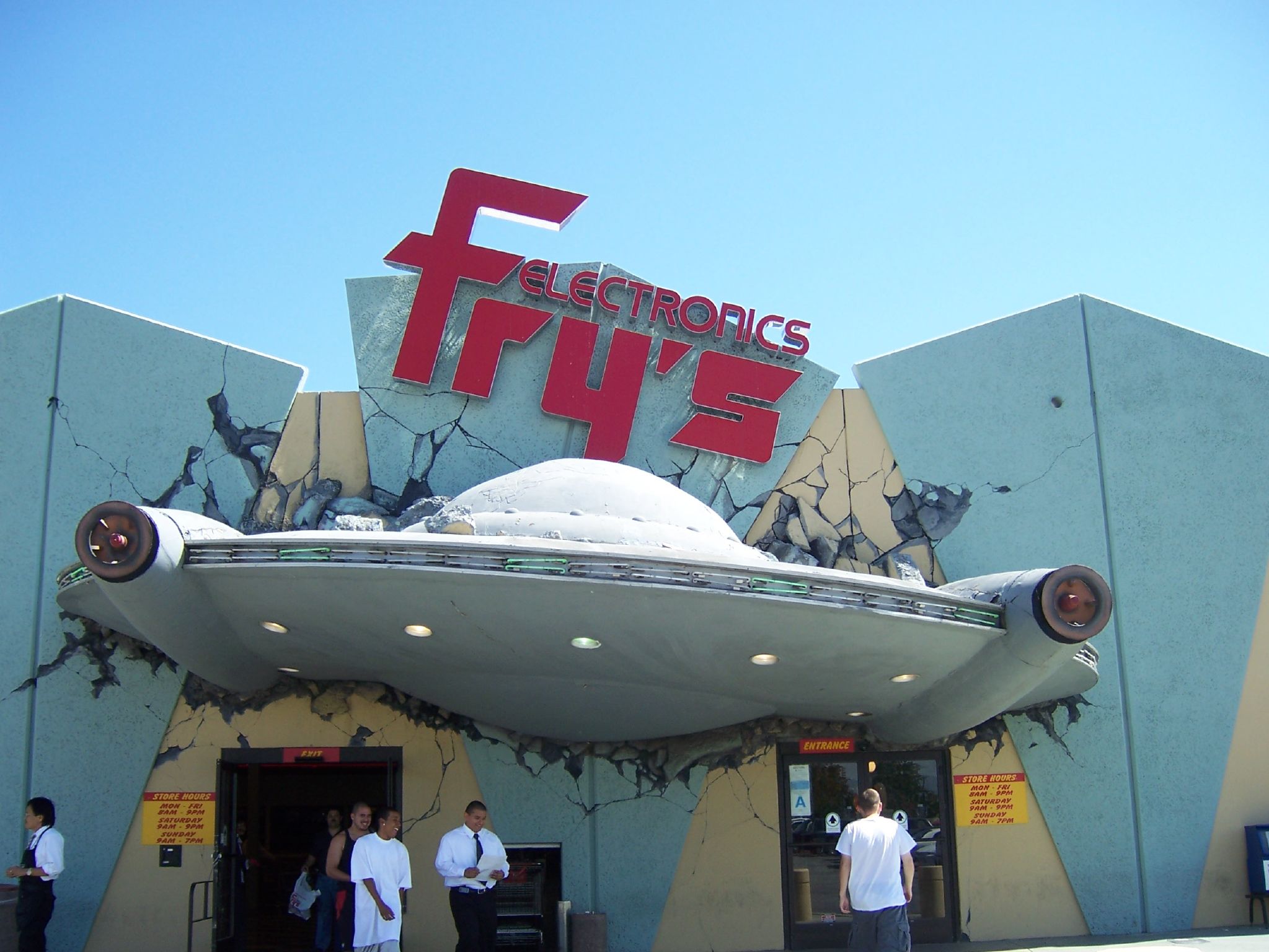 Jede Filiale war nach einem bestimmten Motto dekoriert, der Laden in San Jose an der Brokaw Road als Pyramide im Land der Pharaonen, an der Ladenzeile in Burbanks brach ein monströses UFO durch die Mauer, und in der Filiale in Palo Alto zeigten Cowboys und Indianer des wilden Westens wie es im 19. Jahrhundert in der Gegend zuging. Konzertflügel in Originalgröße standen herum, automatisch klassische Werke klimpernd. Und nicht zu vergessen der gigantische Zeitschriftenstand, der das aktuelle "Linux Magazine" führte, das Vehikel der Programmier-Kolumne eures bescheidenen Schreiberlings. Aber das Wichtigste: Die Kette war ein Riesenerfolg, Kaufwillige drängten bis spät in die Nacht hinein in die Läden, luden gekaufte brandaktuelle PC-Hardware in ihre Autos, und eine regelrechte Geeks-Szene florierte dort.