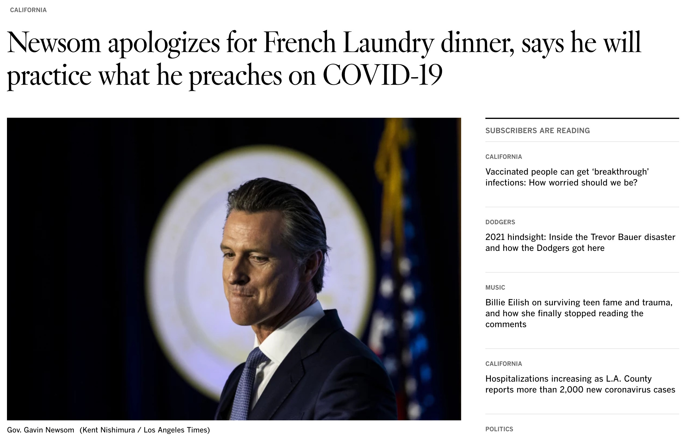 Because of his Corona related policies, he has come under criticism from his political opponents. California's public schools still haven't fully reopened after more than a year of closure, and the partial lockdowns were not universally accepted. The so-called French Laundry scandal was the tipping point. The French Laundry is a world-famous fine dining restaurant in Napa Valley, with its Michelin star awarded chef Thomas Keller. On November 6, 2020, Newsom celebrated the birthday of a friend, a political lobbyist from Sacramento, at the restaurant, and photos revealed that Newsom was not wearing a mask and the birthday party was inside the restaurant, which was not allowed at the time according to Newsom's own coronavirus regulations. This angered many voters. Newsom already had a reputation as an arrogant, wealthy playboy, and the incident seemed to confirm it.