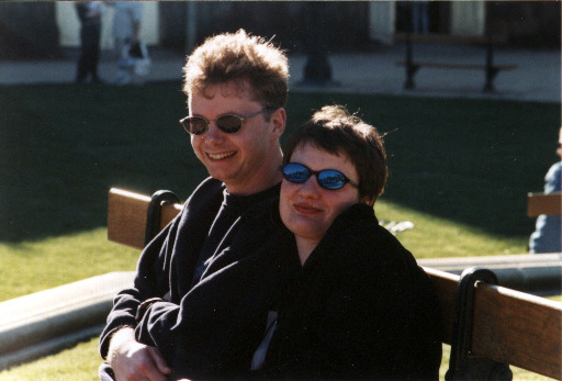 (Michael) Und -- was lange währt, wird endlich gut -- wir haben schließlich doch ein Auto gekauft! Nachdem wir mehrere Wochenenden lang die Autohändler abgegrast haben, um einen günstigen Gebrauchten zu erstehen und uns diese schmierigen Verkäufer immer mehr auf den Geist gingen, habe ich dann nach zähen Verhandlungen doch das Auto von so 'nem Typen aus der Arbeit gekauft, vom Chef meines Chefs, um genau zu sein. Es ist ein acht Jahre alter schwarzer Acura Integra (ein besserer Honda) mit Gangschaltung, was sehr ungewöhnlich für Amerika ist, da hier jeder mit Automatik fährt und die meisten Amis überhaupt keinen Schaltwagen bedienen können. In San Francisco ist das natürlich eine echte Herausforderung, da hier Straßen mit 20% Steigung noch als flach gelten, und wenn man da in eine enge Parklücke muss, raucht die Kupplung. Der Automechaniker, von dem ich den Karren begutachten ließ sagte mir auch, dass eine Kupplung im Silicon Valley etwa 60.000 Meilen hält und in San Francisco nur 20.000. Angelika stand schon 100.000 Ängste aus, aber ich hatte versprochen, ihr am Wochenende den Intensivkurs "Anfahren am Berg" zu geben. An einem Sonntag sind wir dann nach Portrero Hill gefahren und Angelika musste auf den wenig befahrenen Straßen dort immer wieder anfahren, zuerst auf den flacheren, dann auf den immer steileren, und es klappte! Die Lebenserwartung der Kupplung ist zwar jetzt um 10.000 Meilen reduziert, aber es hat geklappt und sie hat ihr San-Francisco-Zertifikat gekriegt!