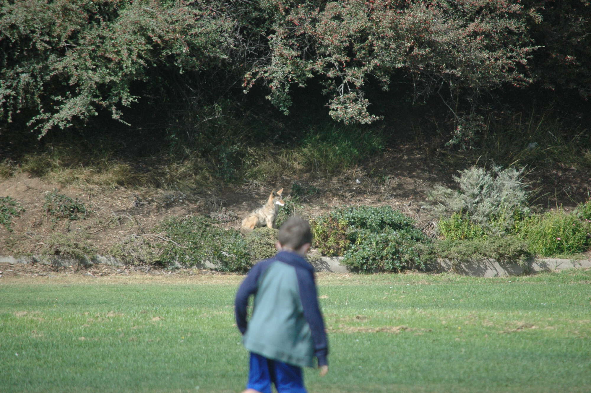Bei unserem sonntäglichen Altherrenfußball im Stadtteil Bernal Heights zum Beispiel grenzt das Spielfeld an einen Bereich mit mannshohen Büschen, in denen eine Koyotenfamilie wohnt. Warnschilder am Eingang des Sportplatzes weisen auf die wilden Bewohner hin, und empfehlen, Hunde nur an der Leine zu führen und nicht frei laufen zu lassen. Und tatsächlich kommen die Koyoten bei sonnigem Wetter auch gerne mal hervorgekrochen, und wir sehen sie dann am Spielfeldrand mit ihren Jungen herumtollen.