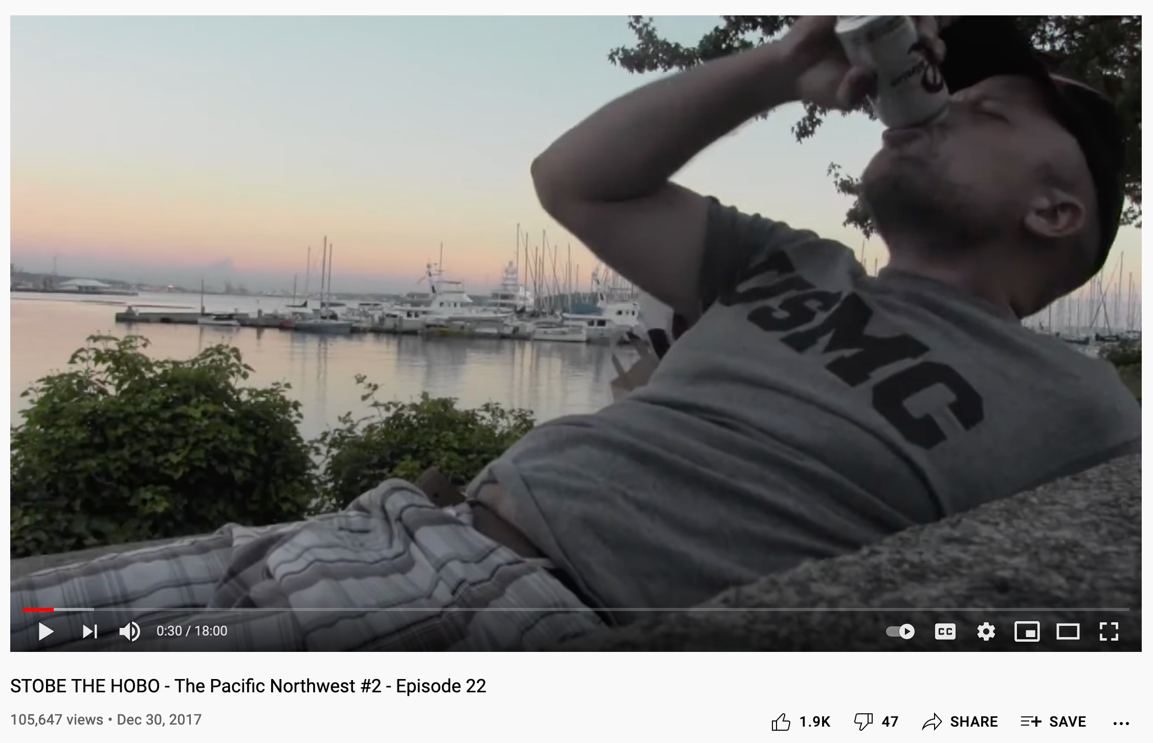 Da die Güterzüge nach einem geheimen Fahrplan fahren, den nur die Eisenbahner kennen, muss der Hobo allerdings oft stundenlang, manchmal sogar tagelang in der Nähe von Streckenkreuzungen abhängen, bis sich wieder eine Gelegenheit zum Mitfahren in die gewünschte Richtung bietet. "Stobe the Hobo", oder James Stobie, wie er mit bürgerlichem Namen heißt, campt dann als Obdachloser unter Brücken, und geht regelmäßig seiner Obsession, dem Erwerb von Unmengen billigen Biers in den lokalen Supermärkten nach. Seine erklärten Feinde sind übrigens die nerdigen Eisenbahn-Freaks, sogenannte Foamer, die, in Ausübung ihres erklärten Hobbies, den ganzen Tag mit umgeschnalltem Fotoapparat an Bahnstrecken abhängen, Züge ablichten und Hobos bei der Eisenbahngesellschaft verpfeifen, falls sie einen bei der Ausübung illegaler Aktivitäten entdecken.