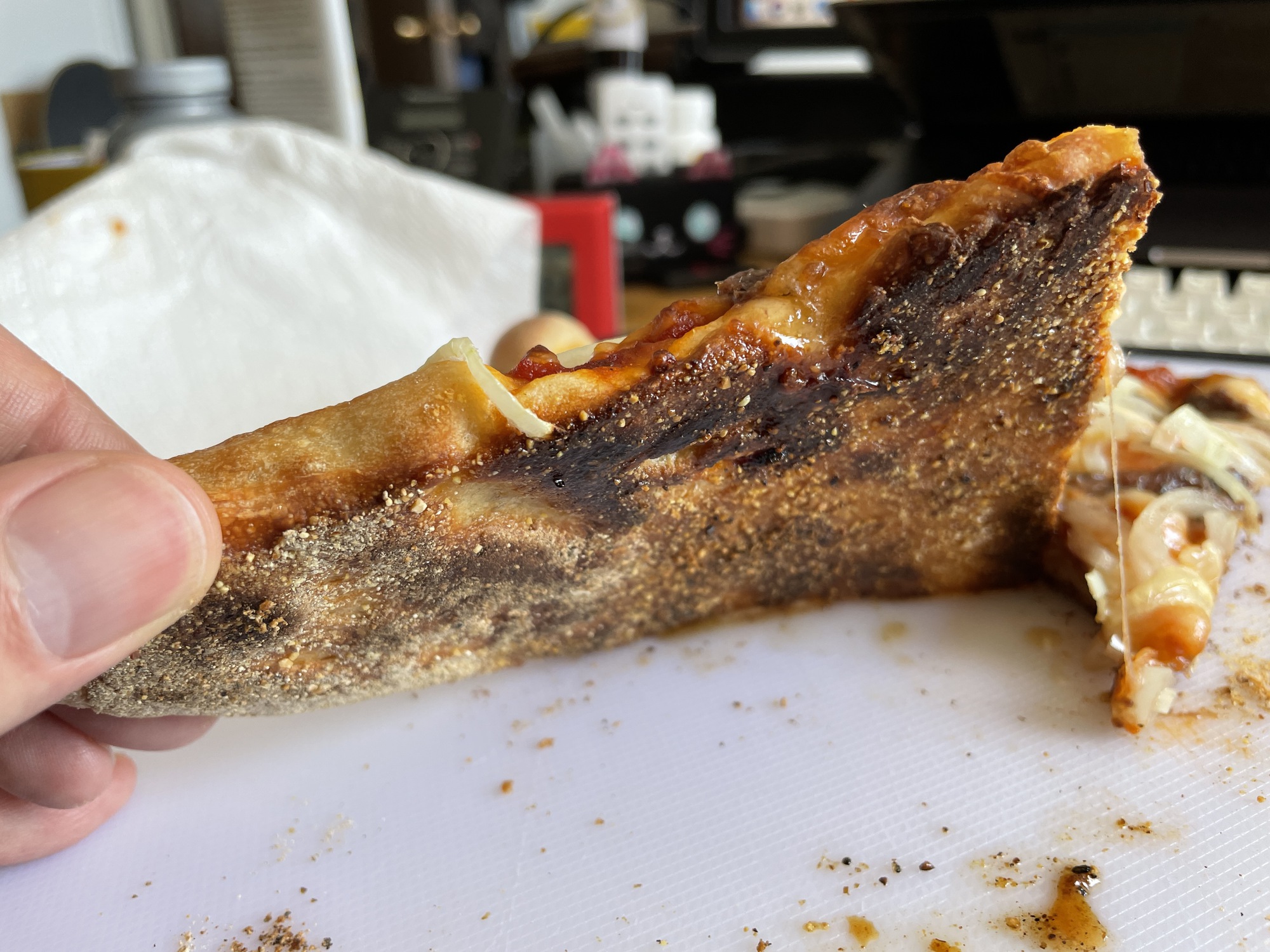 In San Francisco's pizzerias, I often find the pizza to be too doughy. I don't even want to mention the "Chicago-Style," which for the worldly man is not pizza at all, but rather a quiche, though opinions on this differ. And another thing: frozen pizza is an imposition, and anyone who heats one up at home should consider whether they haven't already turned into a one-way street in life, at the end of which stands a sign reading "Bankruptcy." The soggy pizza from delivery services is no substitute either, and for those who want to eat pizza at home, the only real option is to knead the dough yourself, stretch it out, add canned pizza sauce (Don Peppino is quite good) and grated cheese (a bit of Parmesan first, then a heap of Mozzarella), and somehow bake it using your home oven.