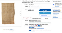 Bei meinen ersten paar Rutschversuchen stellte sich allerdings heraus, dass der Rutschenstahl trotz blankgewienerter Oberfläche mit dem Baumwollstoff meines Hosenbodens zuviel Reibung erzeugte, und statt zu einer rasanten Abfahrt zu beschleunigen, kam ich sofort ins Stocken und musste sogar nachschieben, um nicht stecken zu bleiben. Wieder zuhause fiel mir dann ein, dass wir als Kinder in Augsburgs Freizeitpark Ziegelstadel die Riesenrutsche immer auf Kartoffelsäcken runtergesaust sind. Da man aber heutzutage als urbaner Einwohner einer amerikanischen Großstadt keine Kartoffelsäcke mehr vorrätig hat, bestellte ich kurzerhand auf Ebay einen Viererpack sogenannter "burlap sacks", wie man dazu auf Englisch sagt.