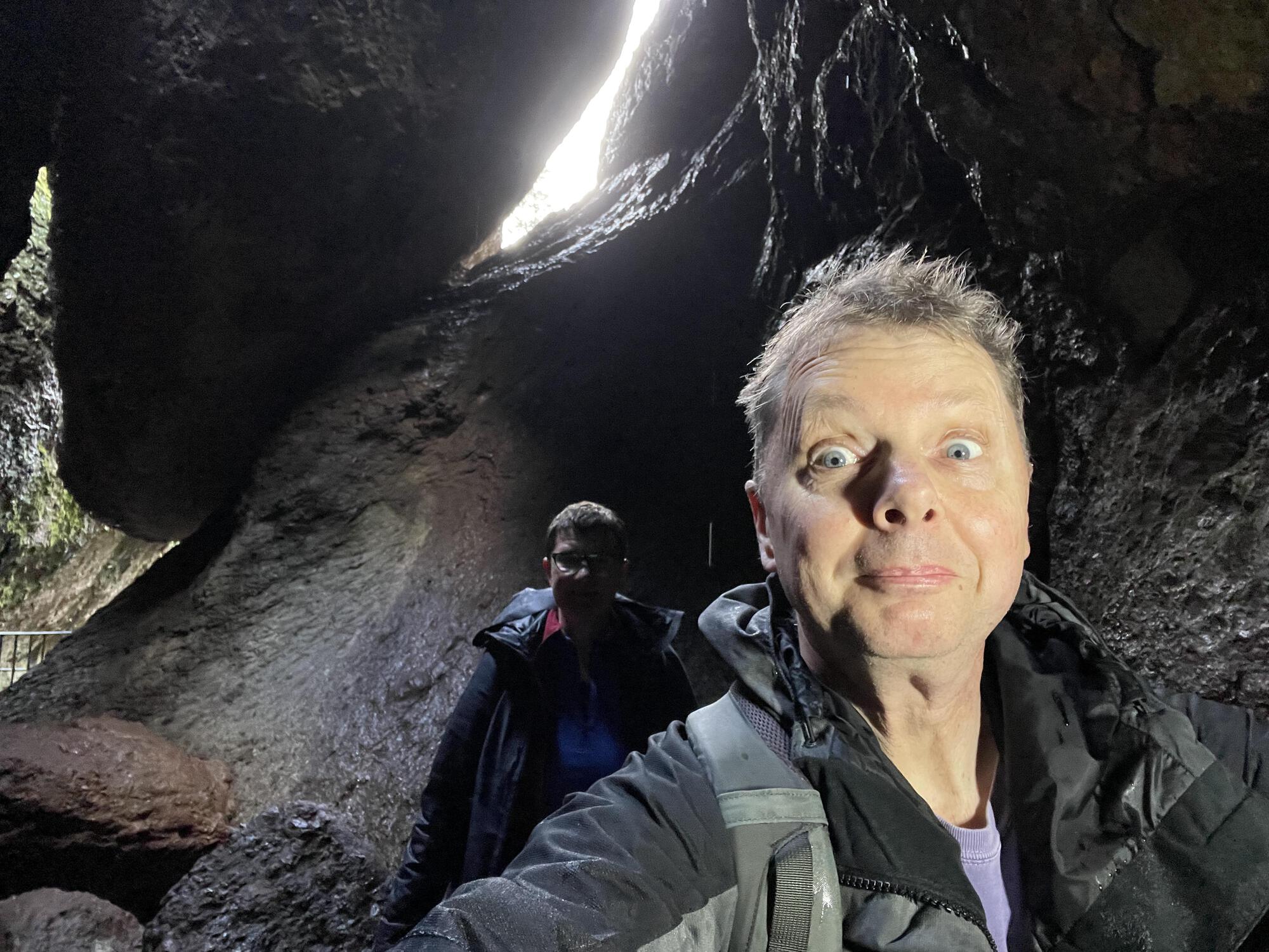 Für die Höhle hatte ich übrigens eine Stablampe für Autoreparaturen mitgebracht, und die war sehr nützlich, denn in den verwinkelten und völlig vom Tageslicht abgeschnittenen Höhlengängen sieht man sonst die Hand vor Augen nicht. Ein richtiges Abenteuer mit gutem Ausgang! Allerdings, wie gesagt, nur machbar bei richtigem Sauwetter, weil sonst Massen an Tagestouristen den beliebten Nationalpark in einen Rummelplatz verwandeln.