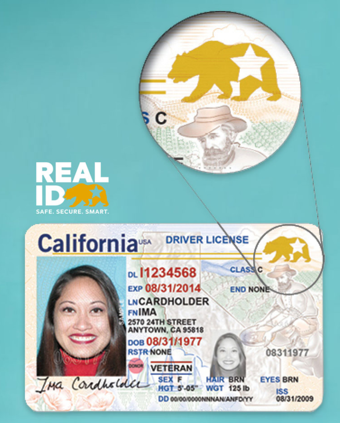 Zu erkennen ist die "Real ID" an dem Stern in der rechten oberen Ecke des Führerscheins. In Kalifornien ist dieser Stern Teil des kalifornischen Bären, der auch die kalifornische Flagge ziert. Man muss übrigens weiterhin keine "Real ID" haben, um in Kalifornien Auto zu fahren, sondern es reicht aus, die alte Standardversion, die immer noch beantragt werden kann, mit sich zu führen. Nur aufs Flugzeug oder in Gebäude wie Gerichte kommt man ab Mai 2023 nicht mehr damit. Dieser Standardführerschein hat keinen Stern in der rechten oberen Ecke, sondern es heißt dort "Federal Limits Apply" in Kalifornien. Somit können Einwanderer ohne gültige Papiere weiterhin einen kalifornischen Führerschein als Fahrerlaubnis erhalten, was seit 2013 durch Gouverneur Jerry Brown erlaubt ist. Die kalifornische "Real ID" hat neben dem Stern und dem Bären auch Merkmale eingebaut, die Fälschungen verhindern sollen.