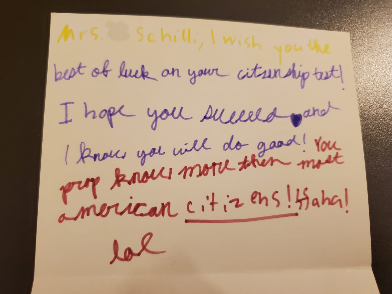 Übrigens hatten wir Glück, dass wir nicht 128 Fragen und die dazugehörigen Antworten zu lernen hatten. Als Trump Präsident war, befand der nämlich, dass der Fragenkatalog mit den 100 Fragen zu einfach wäre und beschloss kurzer Hand, dass von Ende 2020 an zusätzlich 12 von 20 Fragen aus dem neuen umfangreicheren Fragenkatalog richtig zu beantworten wären, um Staatsbürger zu werden. Allerdings rollte Präsident Biden dies gleich wieder zurück, was uns zugute kam. Ich wüsste schon zugern, ob Trump den Test überhaupt bestehen würde. Eine Studie von 2018 hat nämlich herausgefunden, dass nur 36% der Amerikaner das schaffen würden. Ich machte übrigens aus Spaß an der Freud den Test mit meinen Schülern, und die hätten ihn glatt bestanden.