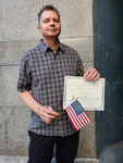 Die eigentliche Zeremonie war dann sehr kurz und schmerzlos. Alle hatten sich zu erheben und die rechte Hand zu heben und dann sprachen wir alle gemeinsam den Treueschwur ("The Oath of the Allegiance"), wohlgemerkt mit Masken. Der Treueschwur hat übrigens einige lustige Passagen, wie zum Beispiel, dass man sich auch von seinem König oder seiner Königin lossagt. Adelige mit entsprechenden Titeln müssen übrigens schwören, dass sie diese als amerikanische Staatsbürger aufgeben. Nach dem Treueschwur geleitete man uns auch schon wieder aus dem Raum. Michael wartete schon auf mich draußen. Wir schossen noch schnell ein Foto und dann fuhr ich zur Arbeit.