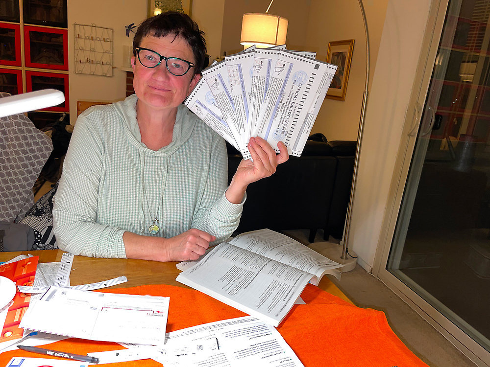 Seit der Pandemie schicken die kalifornischen Behörden jedem registrierten Wahlberechtigten automatisch Briefwahlunterlagen zu. Jeder kann also in Ruhe die Wahlunterlagen zuhause ausfüllen. Es besteht natürlich weiterhin die Möglichkeit, am Wahltag ins Wahllokal zu gehen. Entscheidet sich der Wähler für die Briefwahl, werden die Wahlunterlagen in einen dafür vorgesehenen Briefumschlag gesteckt. Der Briefumschlag wird zugeklebt und außen unterschreiben. Die Unterschrift gilt als Verifizierung, dass es sich bei dem Wähler um die richtige Person handelt. Vor der Auszählung wird erst die Unterschrift auf dem Umschlag mit der auf dem kalifornischen Führerschein des Wählers hinterlegten verglichen. Bei der Wählerregistrierung gibt der Wähler seine Einverständniserklärung dafür. Die ausgefüllten Briefwahlunterlagen können entweder mit der Post eingeschickt oder in spezielle Wahlkästen gesteckt werden, die wie Briefkästen aussehen und über die ganze Stadt verteilt sind. Wir nutzten einen solchen Kasten und warfen unsere Unterlagen in unserem Viertel ein. Interessant ist, dass man anschließend online verfolgen kann, wo sich der eigene Wahlzettel befindet, und ob und wann er mitgezählt wurde.