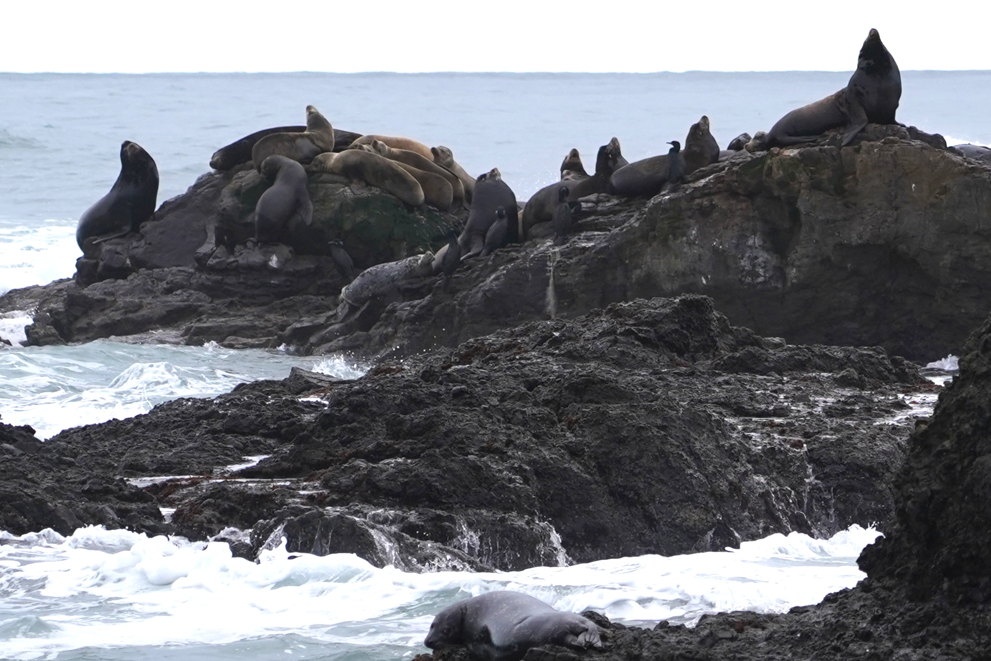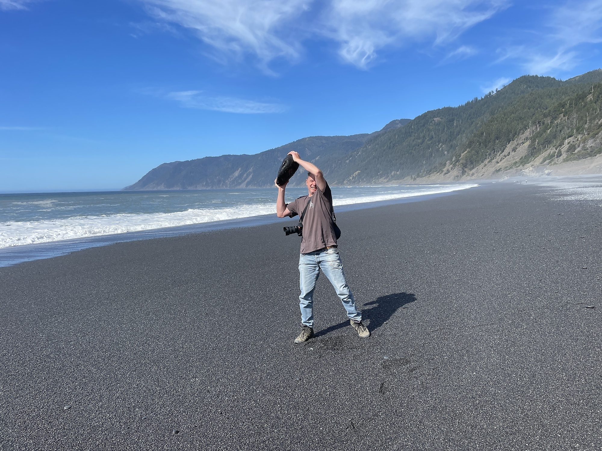 Da kaum Touristen nach Shelter Cove finden, ist man an dem sagenhaften meilenlangen Strand aus schwarzem Sand und Kieseln oft ganz allein und findet allerlei angespültes Meeresgetier, wie die sonst eher seltenen Seeigel und Seesterne. Alle halbe Stunde kamen uns rucksackbepackte Globetrotter entgegen, die auf dem sagenumwobenen "Pacific Trail" südwärts liefen, auf Mehrtagestouren, die man nur bei Ebbe machen kann.