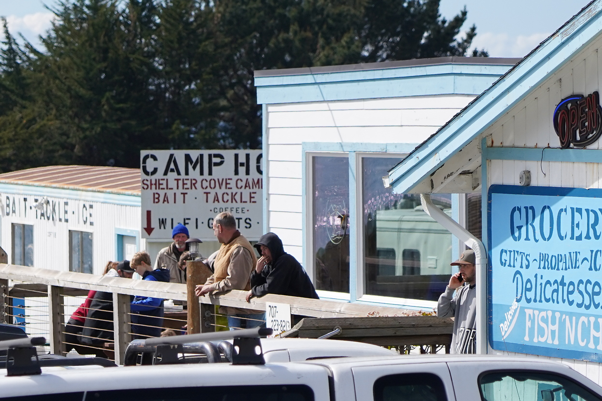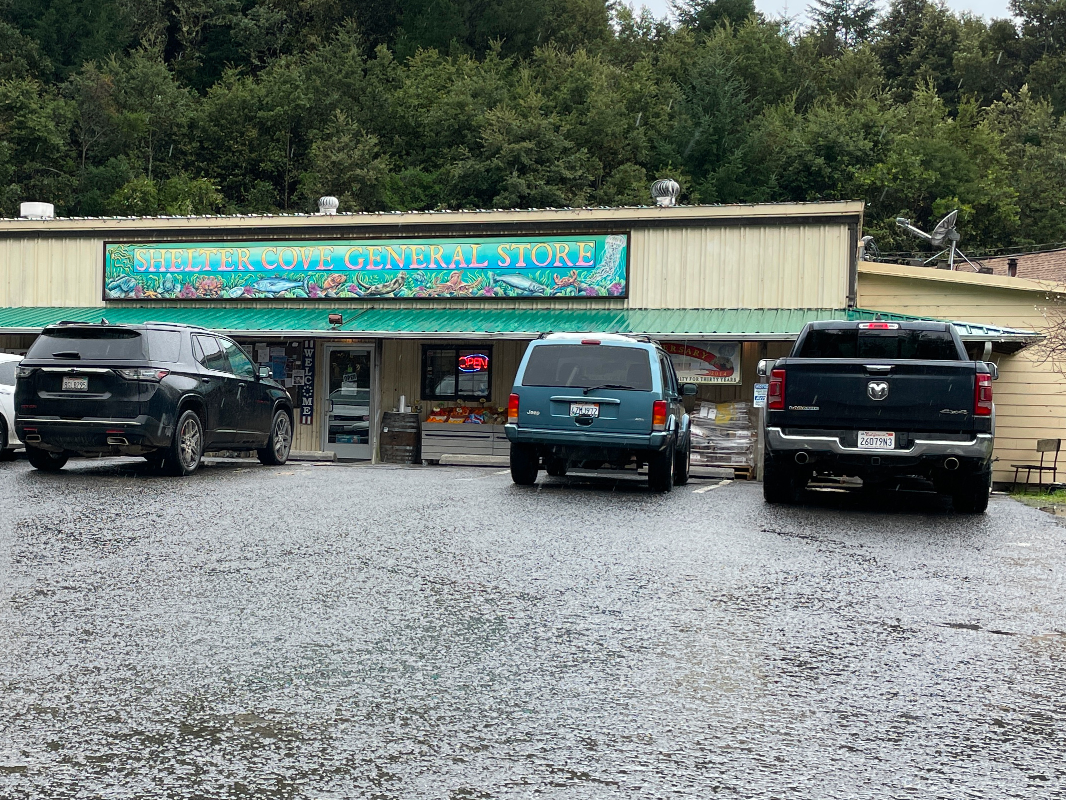 Um nach Shelter Cove zu gelangen, muss der abenteurhungrige Tourist von dem kleinen Städtchen Garberville, das am Highway 101 liegt, etwa 40km über eine Hügelkette hinunter zum Ozean fahren. Unten angekommen muss man sich mit dem Angebot dort zurechtfinden, man kann nicht mal schnell noch in die nächste größere Stadt zum Einkaufen oder in die Notaufnahme eines Krankenhauses. Bei jeder Unternehmung gilt es, diese 40km lange kurvige Strecke zurück in die Zivilisation zu überwinden. Es gibt im Ort genau ein Lokal mit angeschlossener Brauerei und genau einen Supermarkt, von der Art, die man in Amerika "Mom-and-Pop"-Store nennt. Der "General Store" am Ortseingang von Shelter Cove ist zwar klein aber erstaunlich gut sortiert, von Gemüse und Brot über Angelzeug gibt es dort alles was man zum täglichen Leben braucht. Gut, die Waren dort sind leicht teurer als in der Großstadt, aber nicht unverschämt sondern der Distanz angemessen.