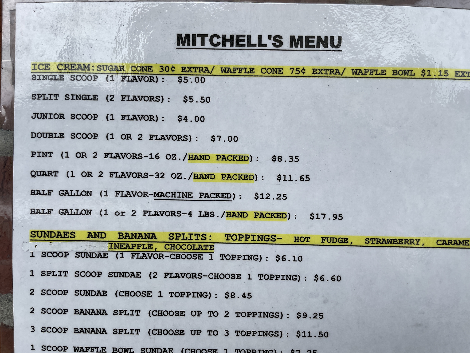 Dabei ist das Speiseeis in Amerika nicht einmal besonders gut, oder die Kugeln signifikant größer als in Deutschland. Der oben genannte Laden "Mitchell's" hat zwar Sorten wie "Mexican Chocolate" die es meines Wissens selbst bei Sarcletti in München nicht gibt, aber die Eisqualität ist absolut auf Augenhöhe. Wie immer gilt: Der Preis richtet sich nicht danach, wie teuer die Herstellung und der Vertrieb eines Produkts ist, sondern allein danach, wieviel der Verbraucher im freien Markt bereit ist, dafür zu berappen.