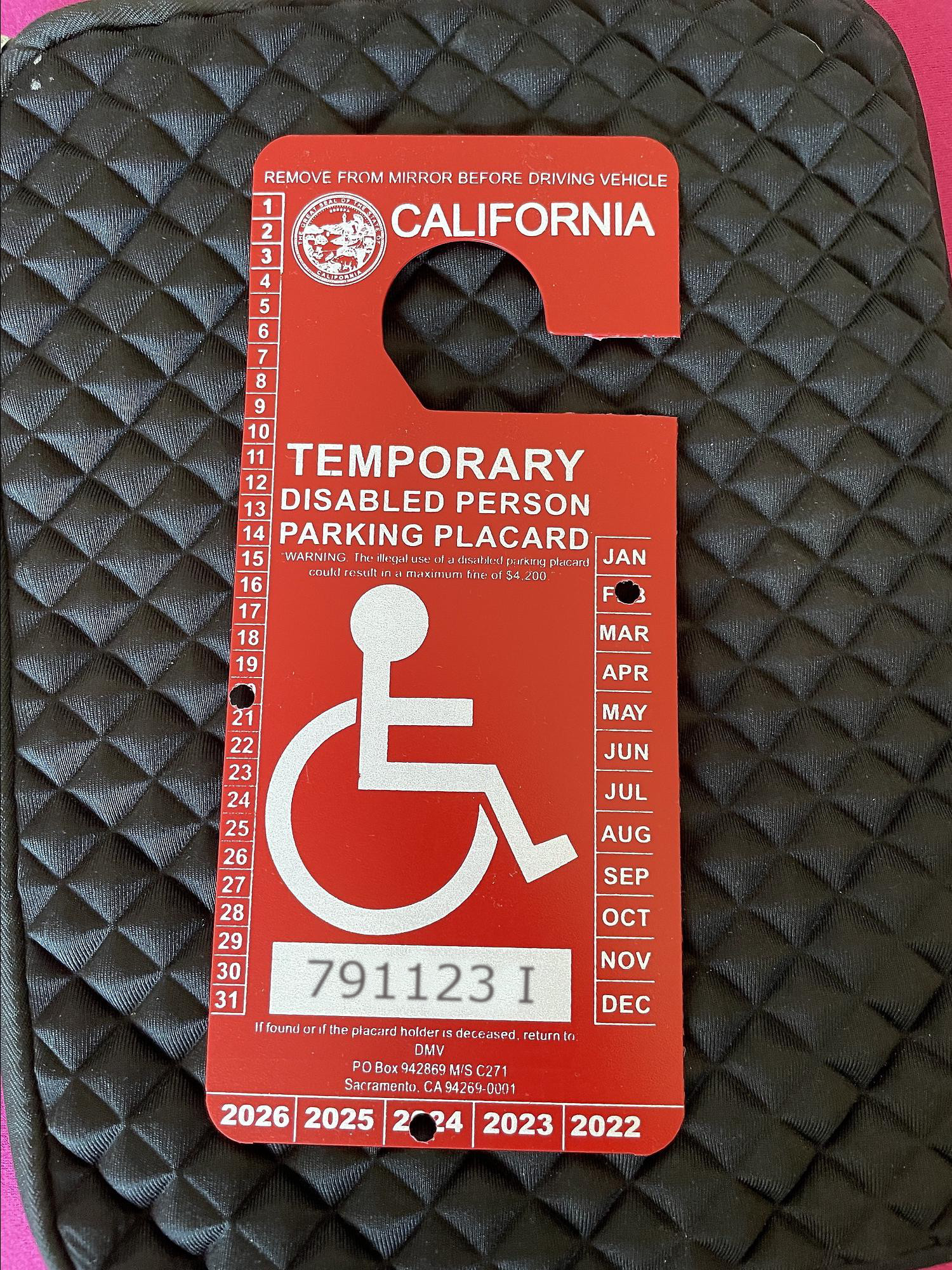 Gesagt, getan, ich rief also die Arztpraxis an, bei der ich wegen des Knies in Behandlung war, und fragte nach einer Behindertenplakette. Die Sprechstundenhilfe des Orthopäden wusste sogleich Bescheid und schickte mir ein ausgefülltes PDF-Formular mit der Ordnungsnummer 150 der kalifornischen Führerscheinstelle DMV per Email zu. Darauf hatte der Arzt per Unterschrift bestätigt, dass ich wegen des Knies nicht mehr mobil war. Ich füllte noch die restlichen Formulardaten aus, Führerscheinnummer und Adresse, und unterschrieb zur Bestätigung. Die Sprechstundenhilfe hatte mich noch gewarnt, dass der DMV manchmal das Original-Formular mit der Tinte des Arztes sehen will, und hatte es zur Abholung bereit, aber ich füllte einfach online einen Antrag bei der Führerscheinstelle aus, und lud Scans meines Führerscheins und der Arztbestätigung mit hoch.