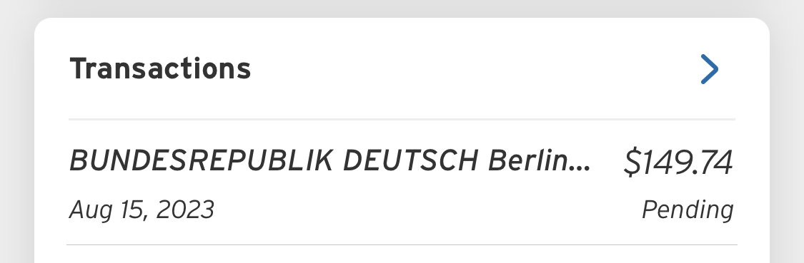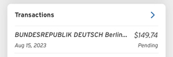 Wie ihr an der Abrechung in Abbildung 8 sehen könnt, kostet die die Bearbeitung mit Auslandszuschlag 81 Euro, die Expressgebühr 32 Euro und die Fedex-Zustellung 23.60 Euro. Das Konsulat akzeptiert Kreditkarten (Visa/Master), abgebucht wird in Euro, von einem Laden der sich in Deutschland befindet, also sollte die Kreditkartenfirma nicht allzu paranoid reagieren. Angeblich kann man auch bar in Landeswährung (also Dollar) zahlen, obwohl die Konsulats-Webseite das Gegenteil behauptet. Die von meiner Kreditkarte abgebuchten Euros wurden von der Kreditkartenfirma natürlich wieder in Dollar umgerechnet, und insgesamt 149 Dollar abgebucht (Abbildung 9).