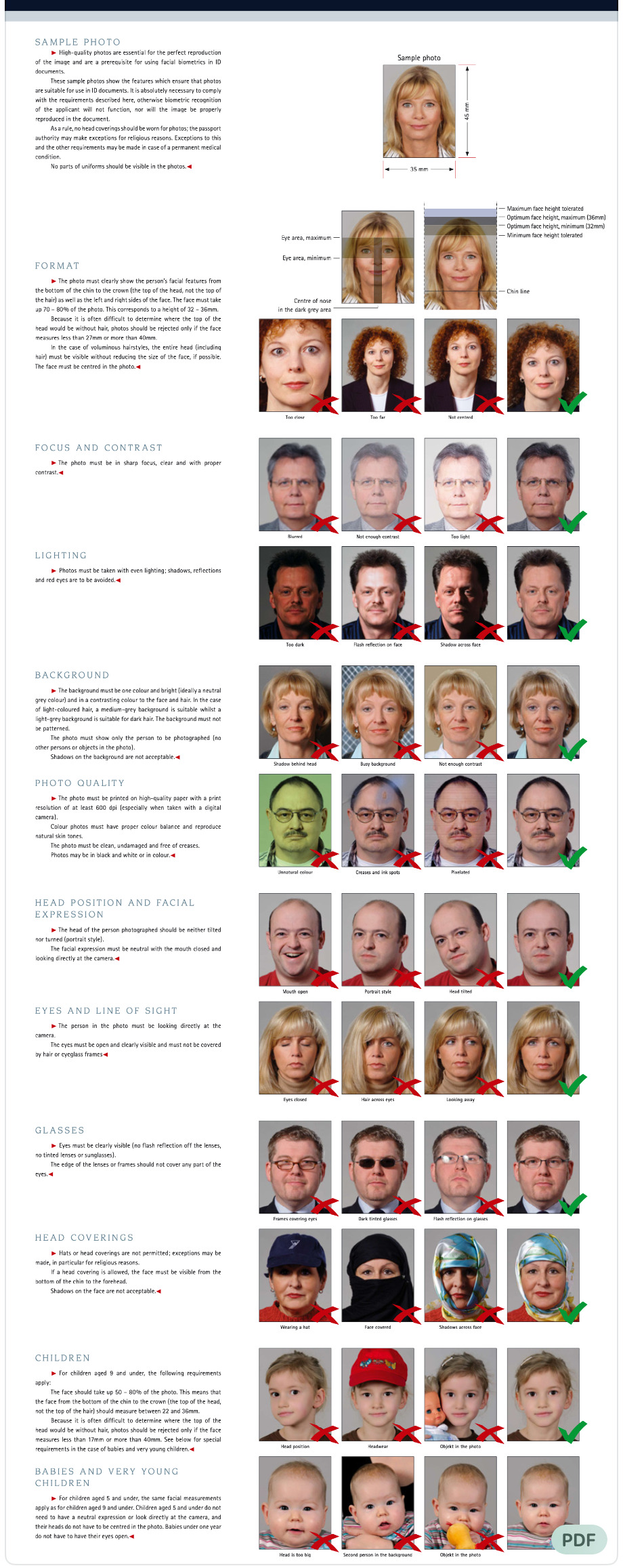Was die Passfotos betrifft, müssen diese laut den Vorschriften in Abbildung 6 genau 35mm x 45mm messen, der abgebildete Kopf muss gerade in die Kamera schauen und eine Reihe von Proportionsvorgaben erfüllen. Wer zuhause eine Kamera und einen Farbdrucker hat, kann die Bilder selbst anfertigen, meine (zugegebenermaßen perfekten, bin Profi) selbstgemachten Fotos wurden anstandslos akzeptiert.