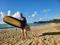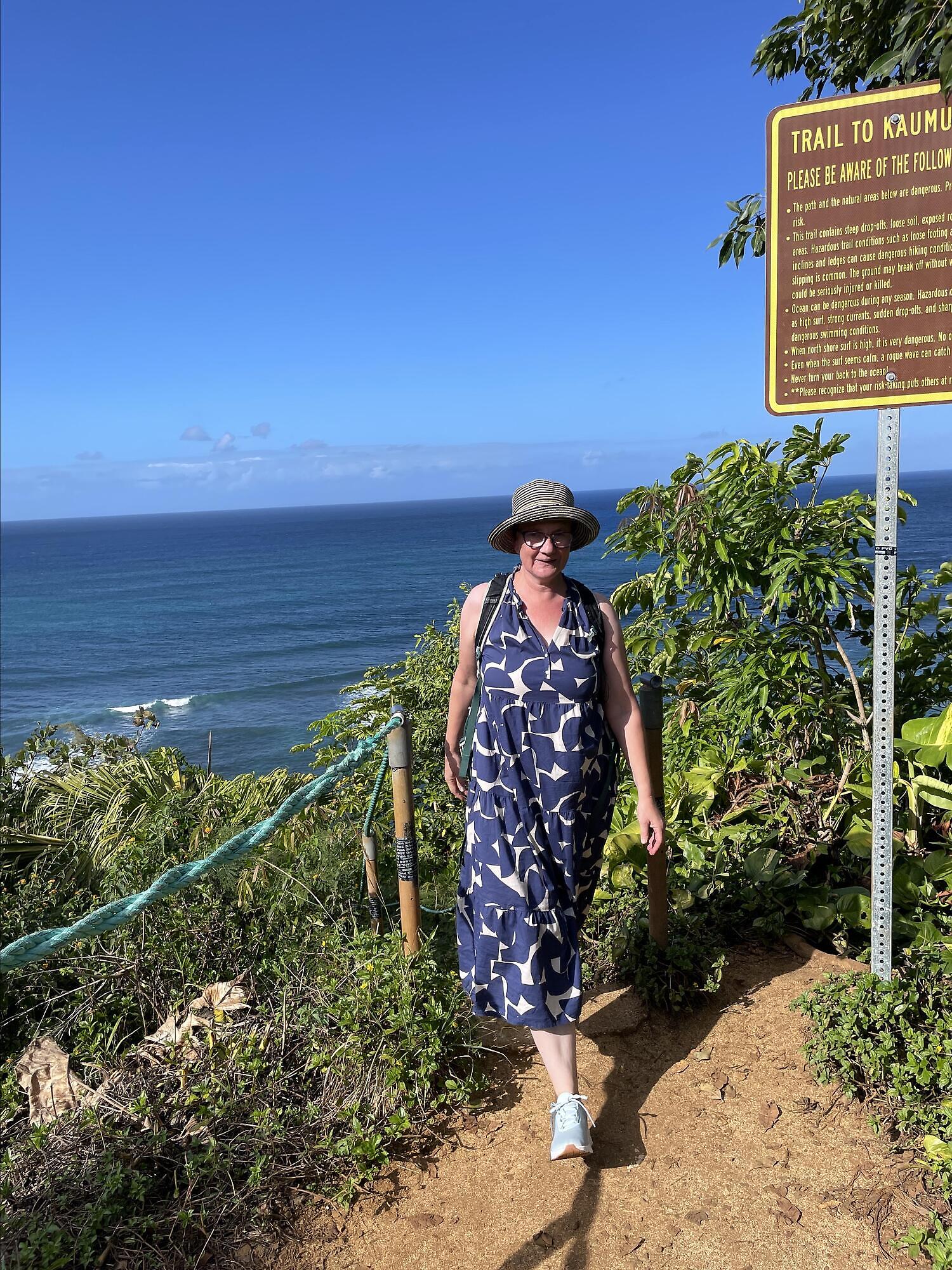 Da meine Schule teilweise dem deutschen Schulferienkalender folgt, und wir immer eine Woche Herbstferien im Oktober haben, wenn amerikanische Schulen nicht frei haben, nutzten wir die Gelegenheit, um auf die hawaiianische Insel Kauai zu fliegen. Wir waren schon lange nicht mehr dort gewesen. Kauai war die erste Insel, die wir jemals besucht hatten, und sie ist bekannt für ihre üppige Vegetation und die tollen Strände. Dieses Mal zog es uns in den Norden der Insel, und wir hatten eine kleine nette Wohnung in Princeville gemietet. Der Vermieter Gary wohnte nebendran im großen Haus. Gary war super großzügig und lieh Michael sogar, ohne mit der Wimper zu zucken, seine Surfbretter aus. Wir tummelten uns jeden Tag im warmen Ozean, entdeckten versteckte Strände, und aßen Poke ohne Ende, das traditionelle hawaiianische Gericht, das aus rohem Fisch zubereitet wird. Wir träumen jetzt schon wieder vom nächsten Hawaiiurlaub.