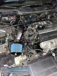Das ging relativ problemlos, nachdem ich aus Platzgründen einige Schläuche im Motorraum ummontieren musste, aus denen angriffslustig Kühlmittel quoll, als ich sie abstöpselte. Jetzt haben wir in einem 27 Jahre alten Motor einen brandneuen Rennluftfilter. Als ich beim Smog-Mann zum (kostenlosen) Nach-Test vorfuhr, stimmten alle Abgaswerte und er wunk mich durch. Ich hatte auch extra einen $200 teuren Filter gekauft, der die kalifornische Zertifzierung (CARB) besaß, der für andere Bundesstaaten hätte nur $50 gekostet. Danke, Kalifornien!