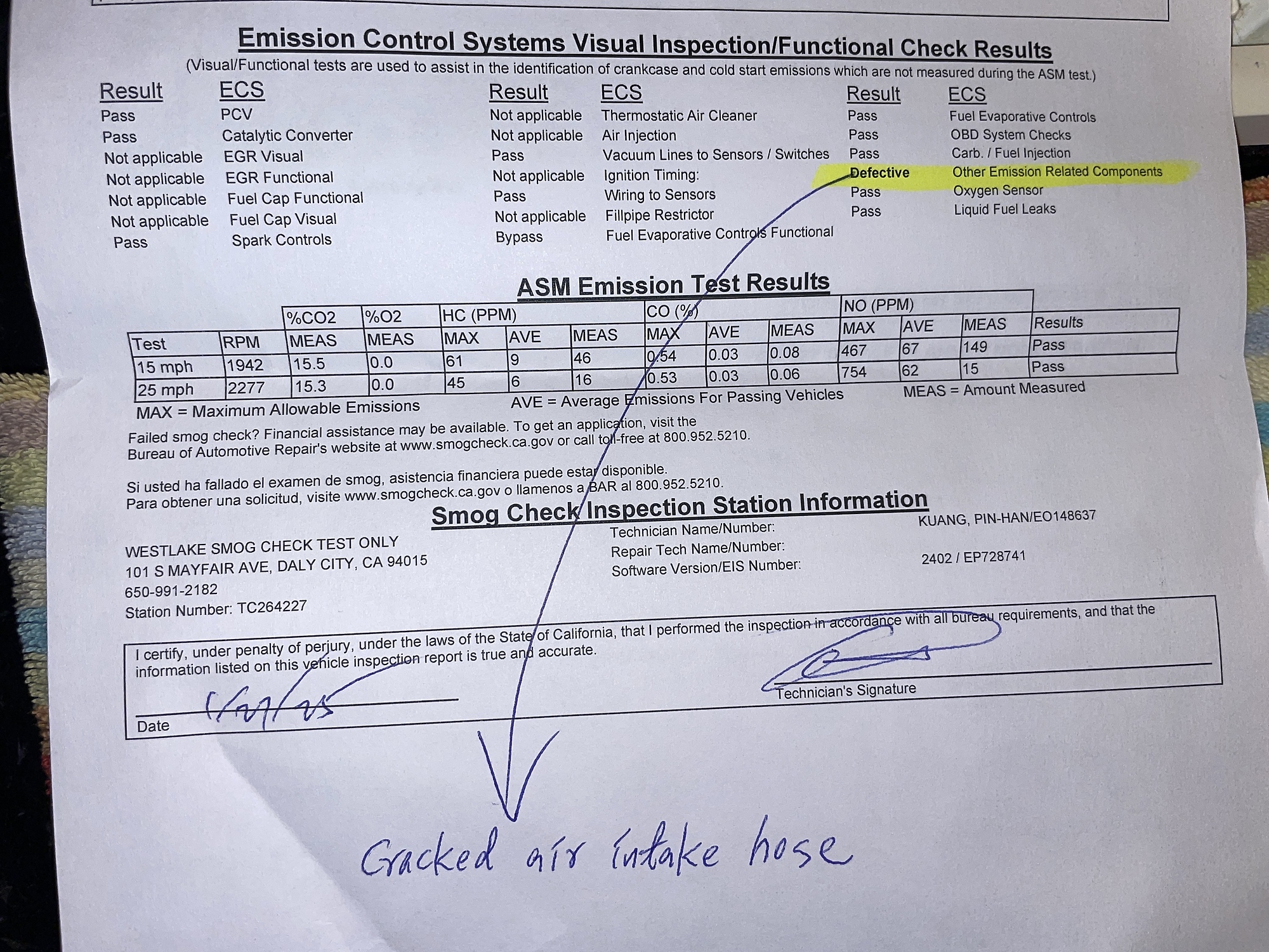 Nun passierte es mir neulich, als ich unseren alternden Acura Integra, von uns liebevoll "Rakete" genannt, gut gelaunt beim Smog-Center vorfuhr und zu meinem bassen Erstaunen erfuhrt, dass unser Auto durch den Smog-Test gerasselt war. Ich wusste, dass man ein Auto ohne bestandenen Smog-Test in Kalifornien nicht weiter anmelden darf, und es stellte sich eine leichte Unruhe ein. Allerdings fand ich heraus, dass unsere Rakete nicht etwa die zulässigen Abgaswerte überschritten hatte, sondern dass eine händisch erfolgte Inspektion des Motorraums seitens des Smog-Manns einen Riss im Schlauch zum Luftfilter entdeckt hatte.
